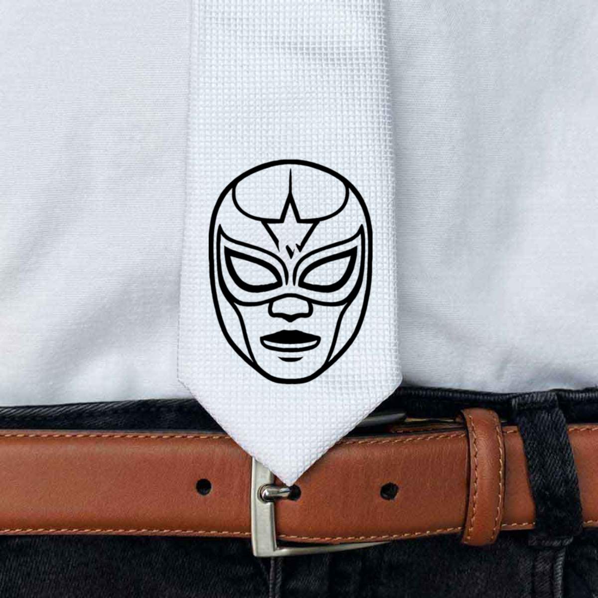'Lucha Libre Mask' White Tie / Necktie with Gift Box (AT00017241)