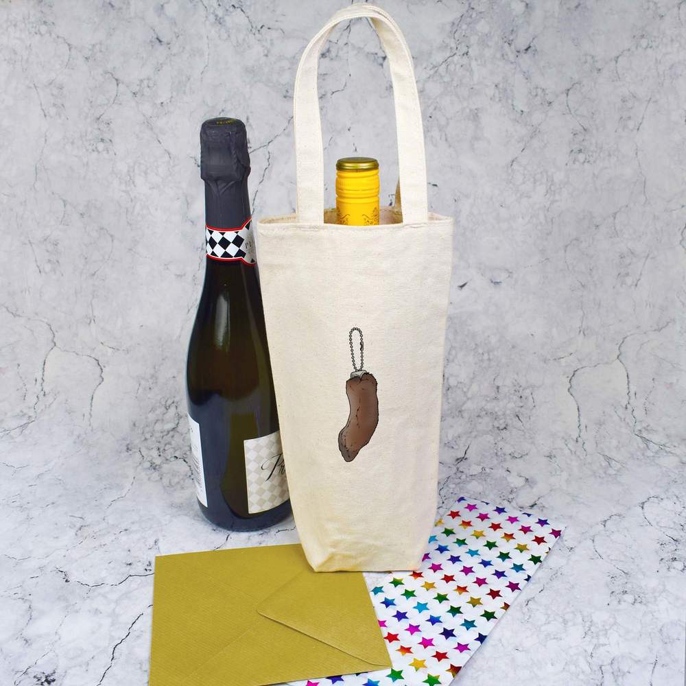 Give a gift in style with this wonderful wine bottle bag. Printed one side with a unique design, this bag oozes with class. Each one is made from thick natural canvas and its high quality finish means it can be used again and again; perfect for picnics and adventures where a bottle of the finest wine is required. This bottle bag can comfortably carry a single standard wine or champagne bottle, up to 1.5 litres, but please check the bag dimensions are suitable before purchasing.
