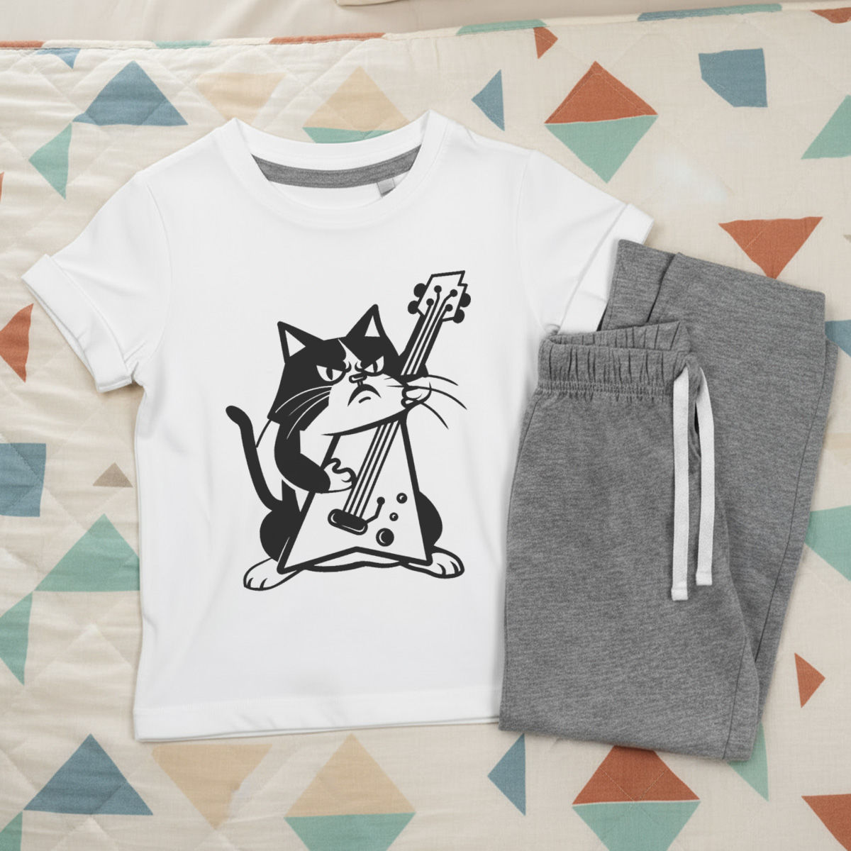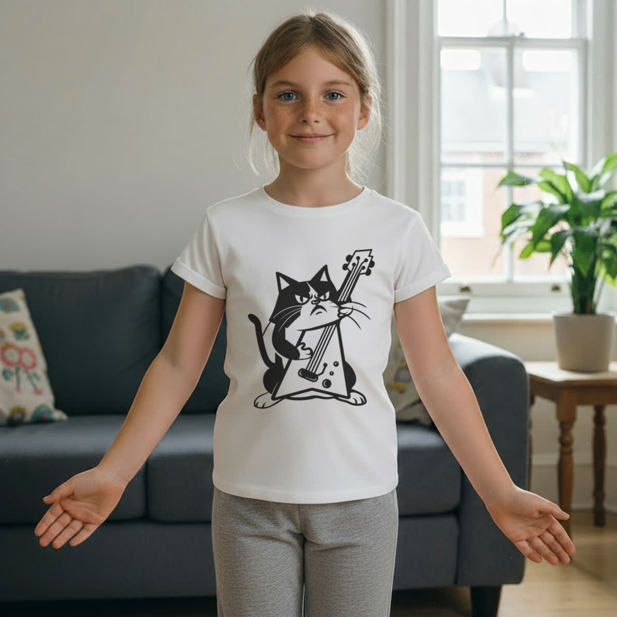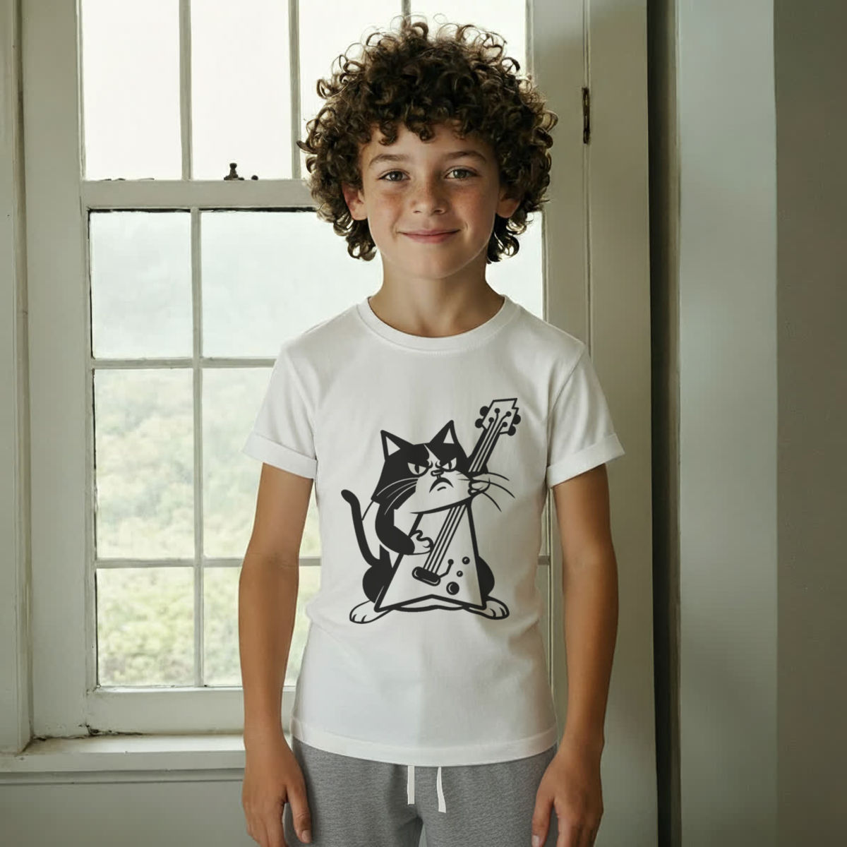'Mad Cat Playing Electric Guitar' Kids Cotton Pyjama Set – Comfortable Children's Nightwear, Sleepwear and Loungewear - Unisex for Boys and Girls - Grey, 11-13 Years (KP00168791)
