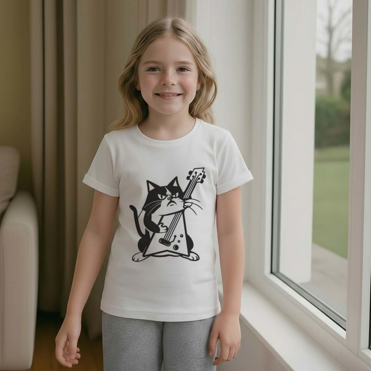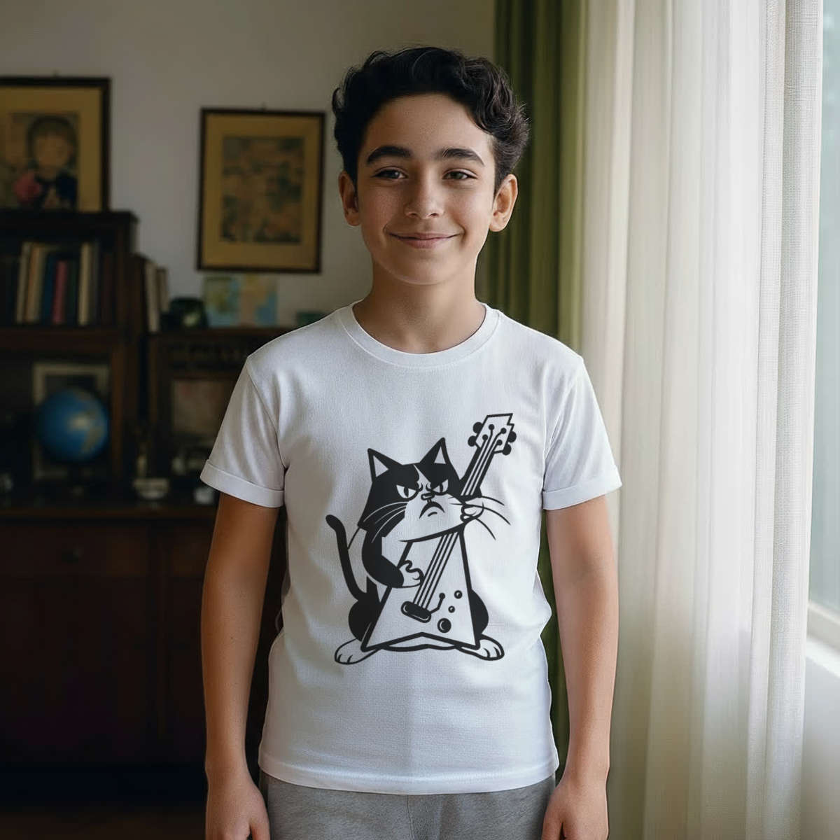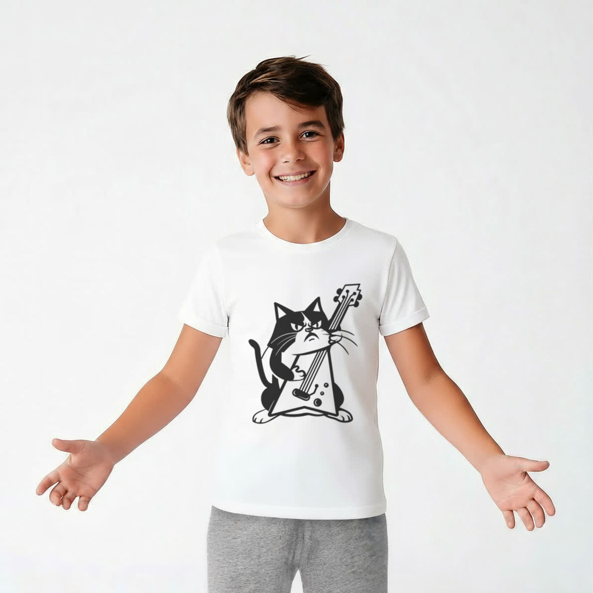 'Mad Cat Playing Electric Guitar' Kids Cotton Pyjama Set – Comfortable Children's Nightwear, Sleepwear and Loungewear - Unisex for Boys and Girls - Grey, 11-13 Years (KP00168791)