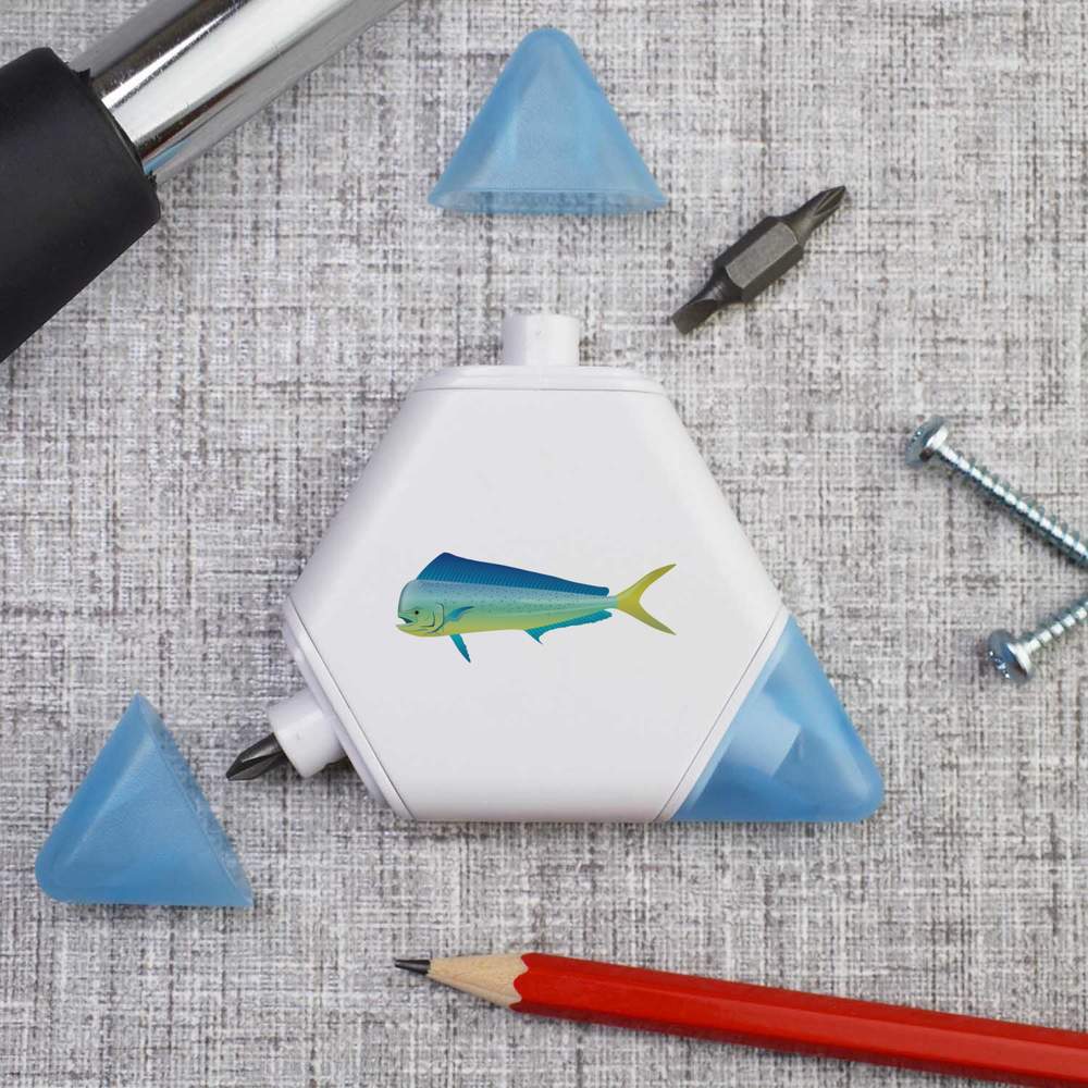 Our triangular compact multi tool is printed on one side with a unique design, making it a great gift for DIY lovers. This 3-in-1 tool set contains a tape measure and 2 different screwdriver attachments and each corner has a snap shut lid. One corner reveals a 1 meter tape measure, while the others hide two reversible screwdriver attachments, one larger and one smaller, both of which have a cross head on one end and a flat head on the other.