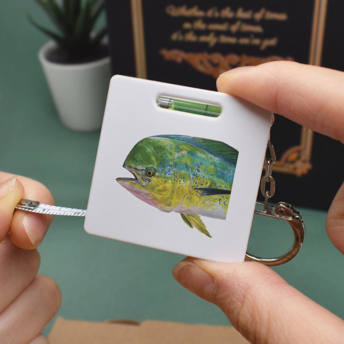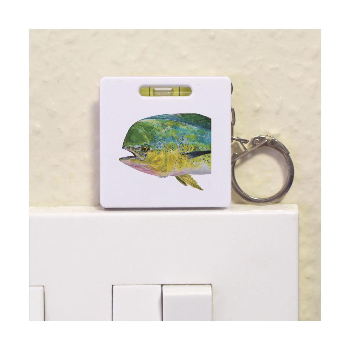 This multifunctional tool offers both a tape measure and spirit level in one handy little accessory. The retractable, 1 metre tape measure has both imperial and metric units, while the flat edges around its plastic casing provide the ability to check both vertical and horizontal surfaces with a mini spirit level. The compact and lightweight design makes it easy to carry around; simply attach with the keychain provided and whip it out when needed. Each keyring tape measure tool is printed on one side with a unique design.
