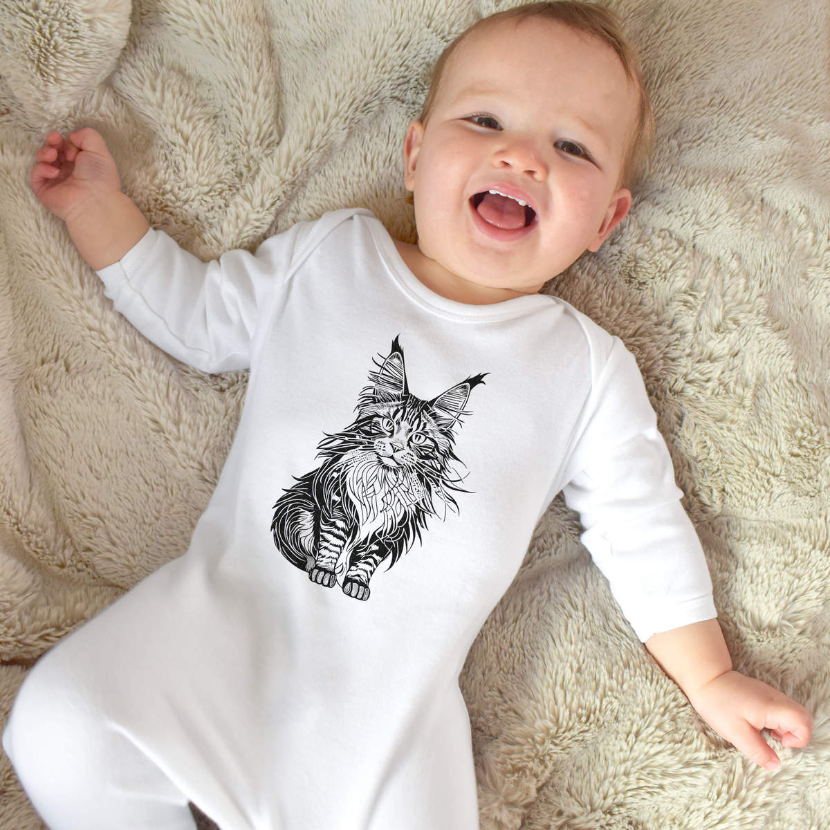 'Maine Longhair Cat' Baby Romper Jumpsuits / Sleep suits (SS044124)