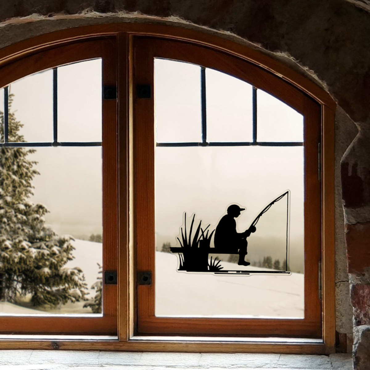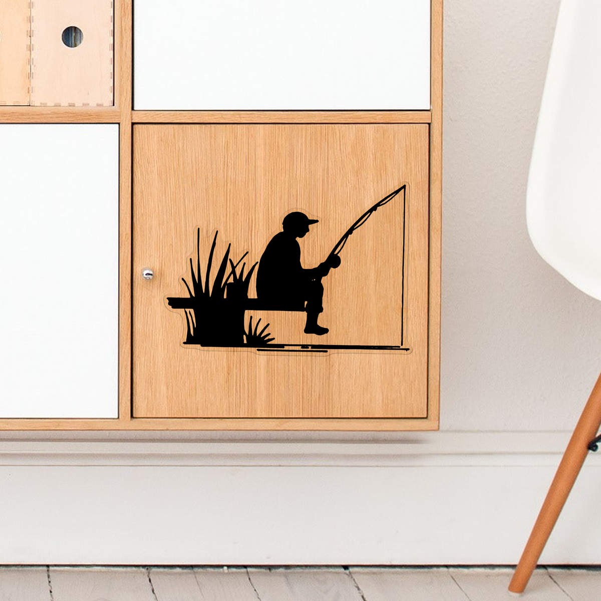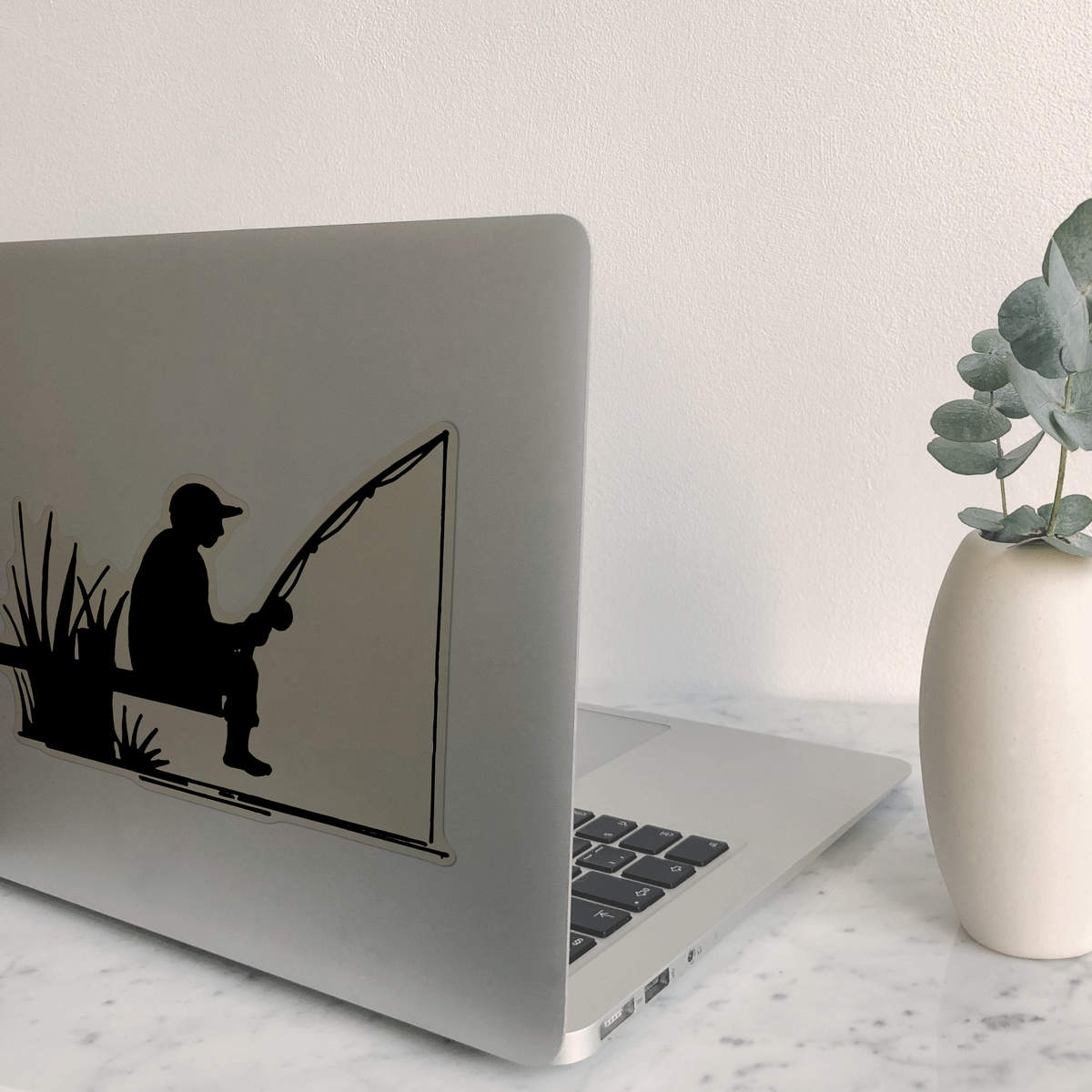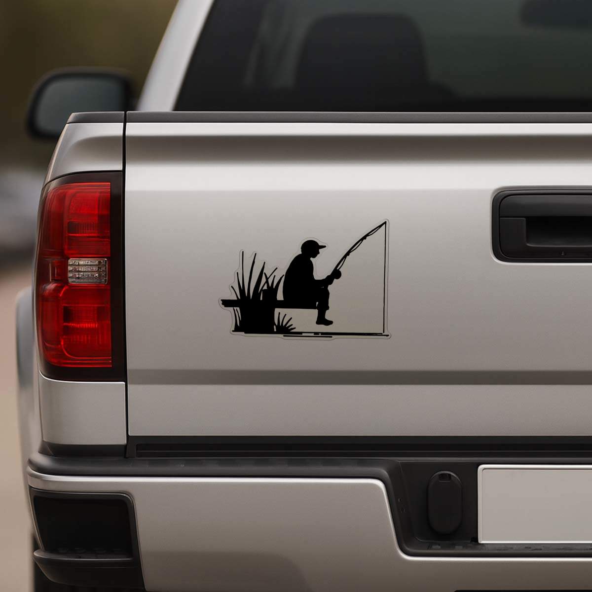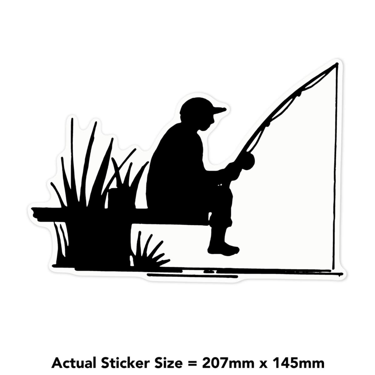 'Man Fishing Silhouette' Clear Premium Vinyl Decal Stickers – Waterproof, Durable & Easy to Apply - For Car Bumpers, Windows, Bins & More - Large (210mm) (DC00078115)