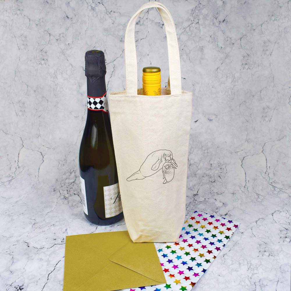 'Manatee Mother & Calf' Cotton Wine Bottle Gift / Travel Bag (BL00019747)