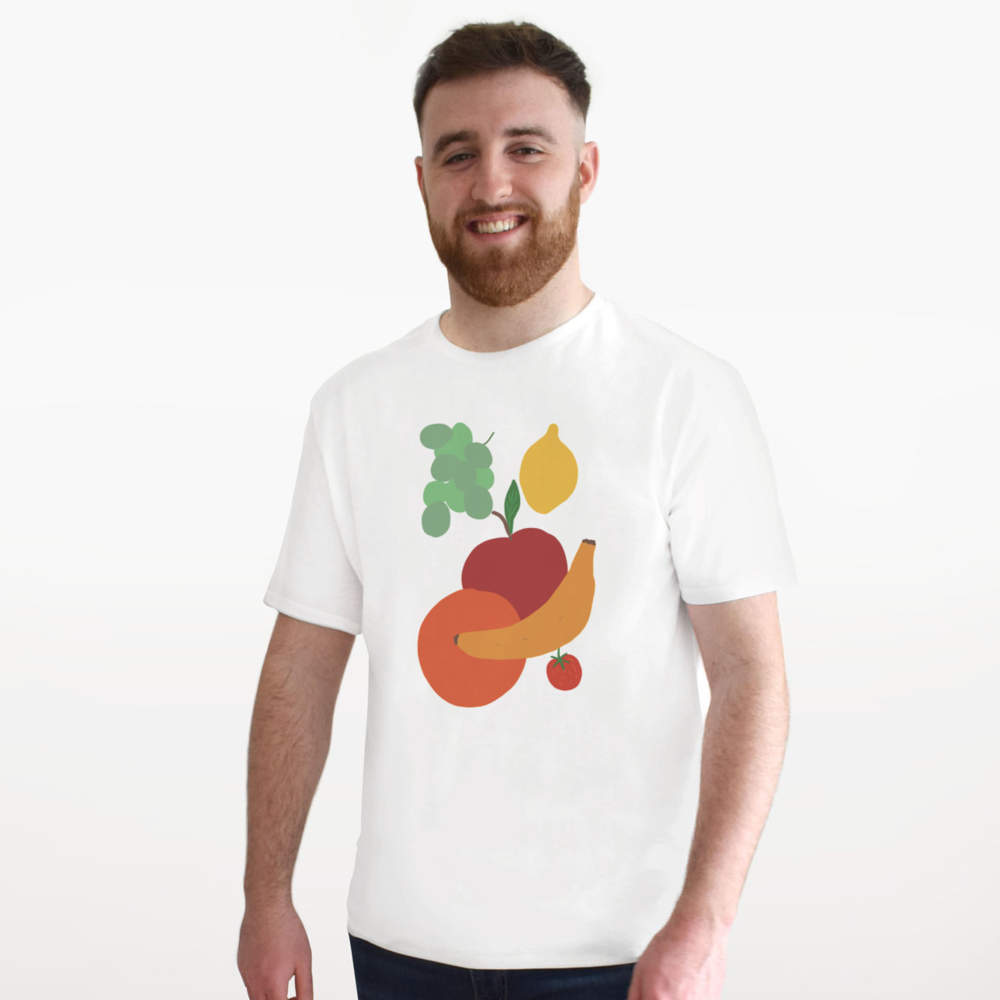 'Many Colourful Fruits ' Unisex T-Shirt - 100 % Cotton, White, S (TA00395558)