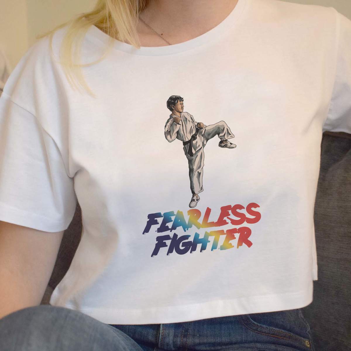 'Martial arts, fearless, fighter, courage, strength, determination, bravery, perseverance, indomitable spirit, martial mastery, powerful kick, technical excellence, inspiration, unyielding.'