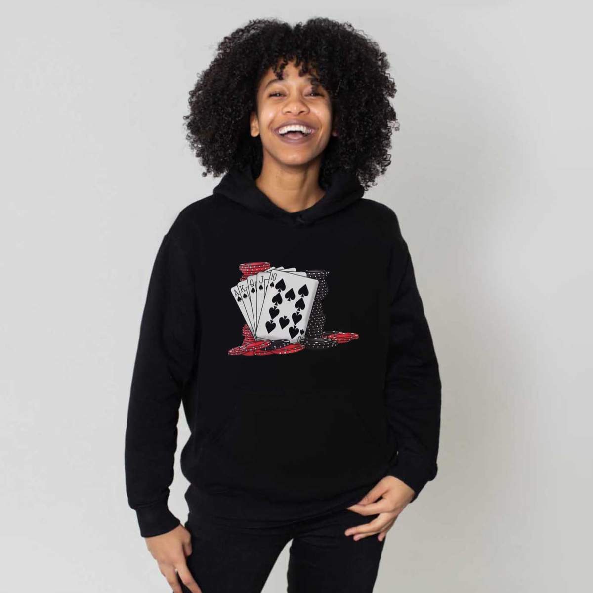 Medium 'Cards & Poker Chips' Adult Hoodie / Hooded Sweater / Jumper (Black) (HO00213466)
