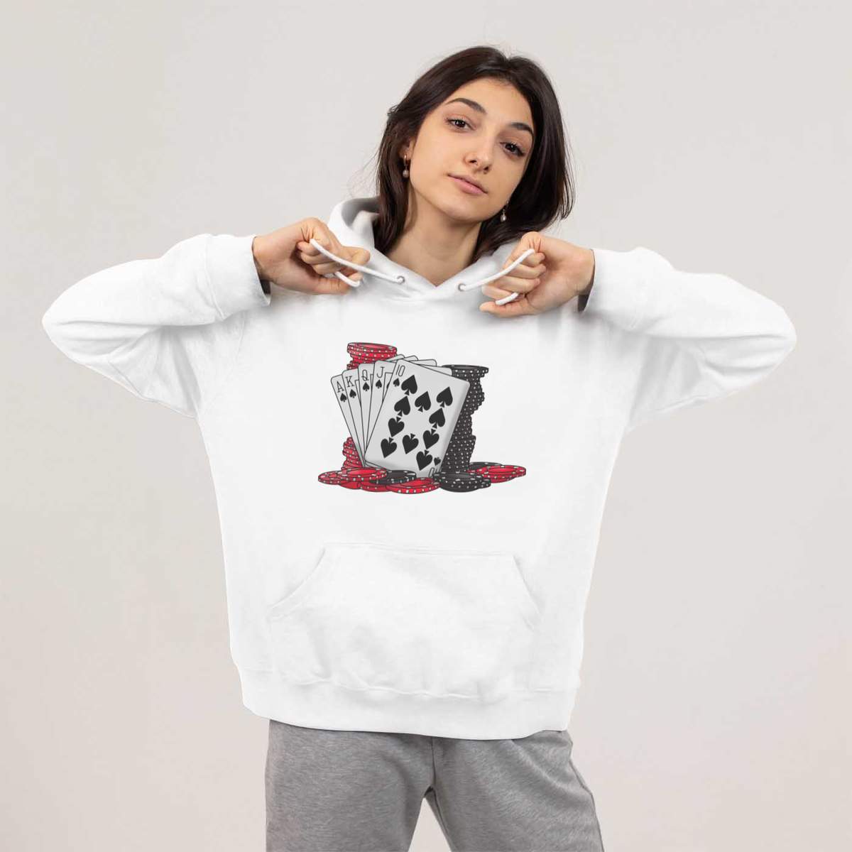Medium 'Cards & Poker Chips' Adult Hoodie / Hooded Sweater (White) (HO00097490)