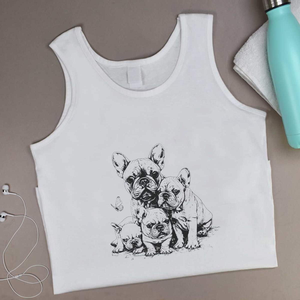 Medium 'French Bulldog Mother with Puppies' Adult Vest / Tank Top (AV00130132)