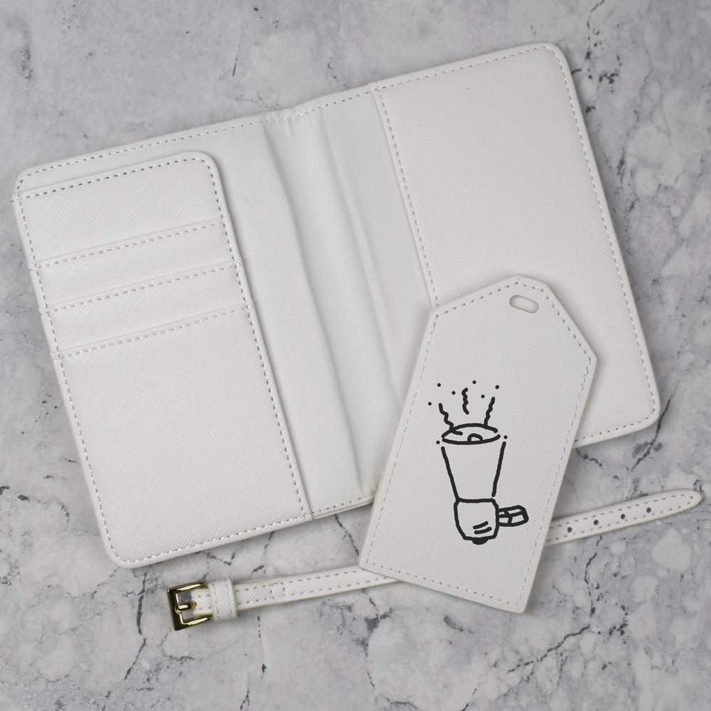 A luxury travel set for holiday makers and jet setters! This premium duo consists of a passport cover and matching luggage tag; both made from white, leather-look PU and printed with a unique design.