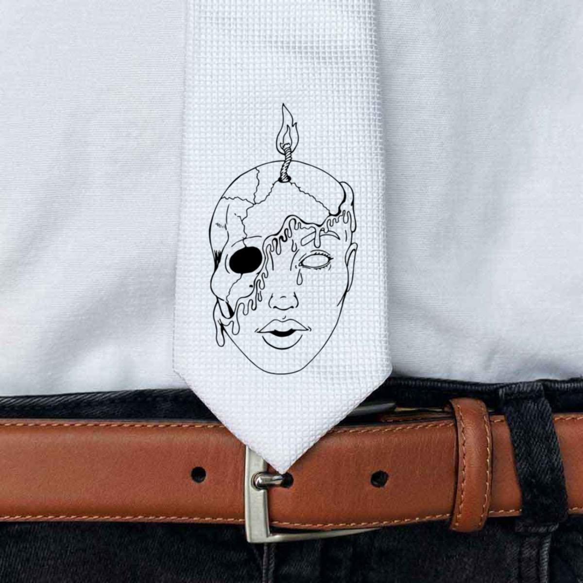 'Melting Skull Candle' White Tie / Necktie with Gift Box (AT00007422)