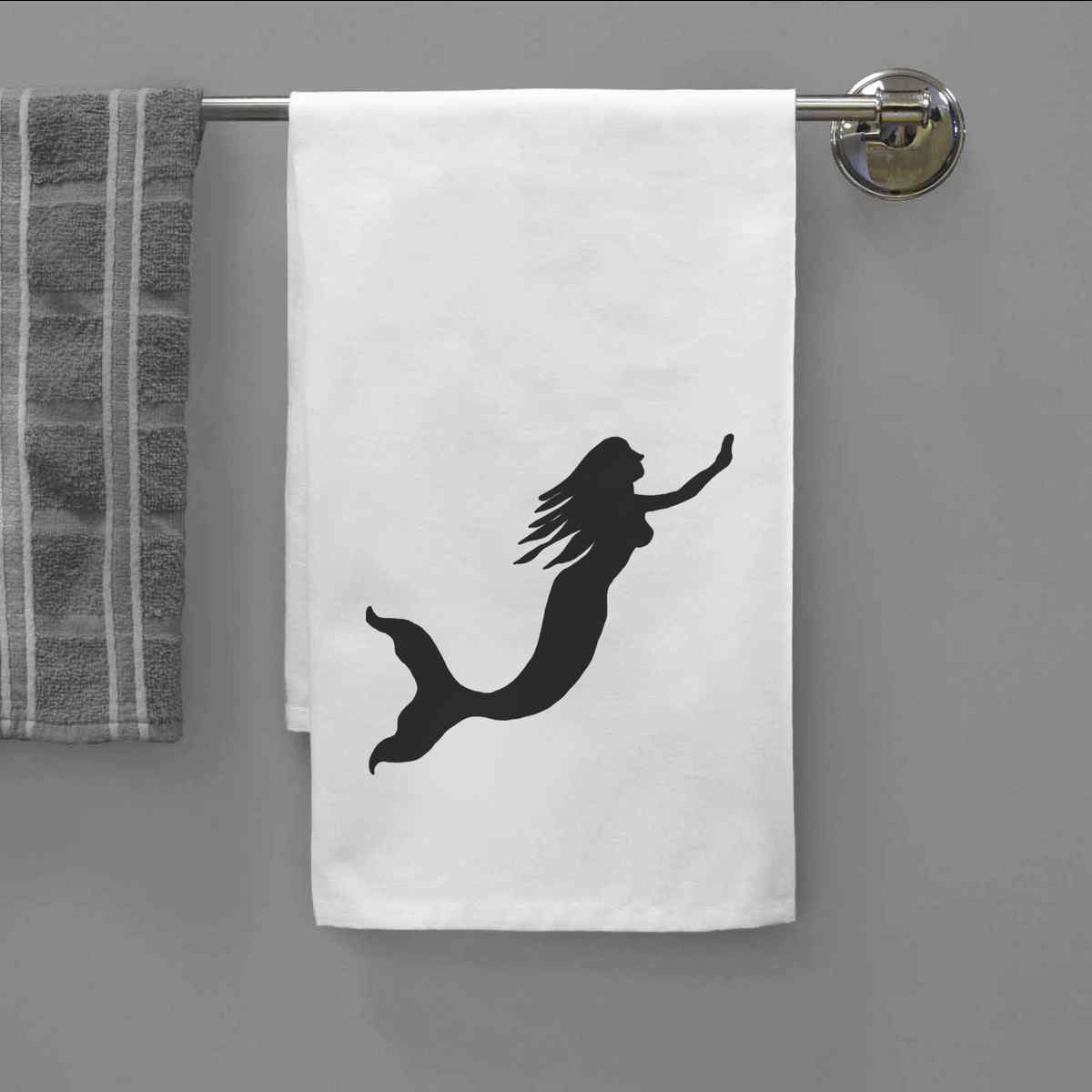 - White cotton tea towel with hanging loop