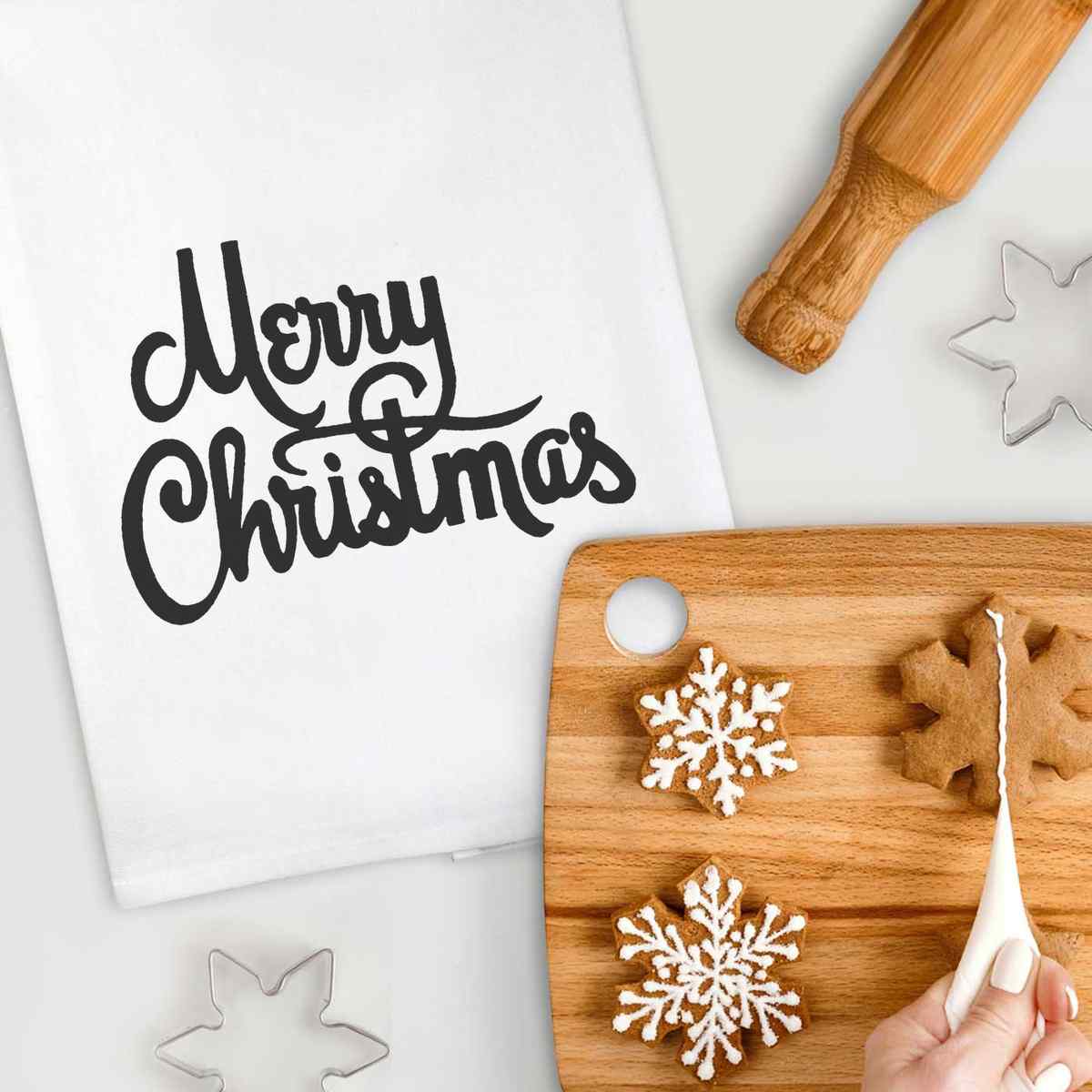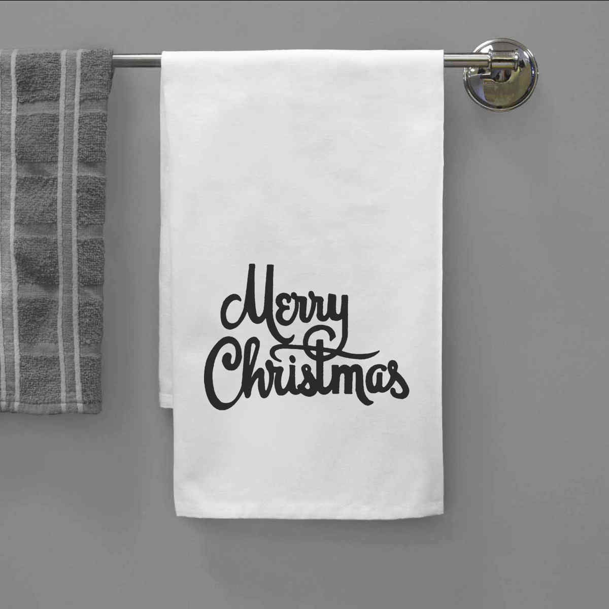 'Merry Christmas' White Cotton Tea Towel / Dish Cloth (TW00013907)