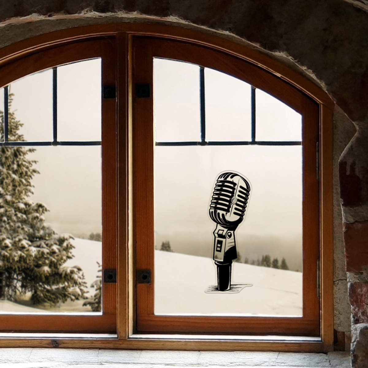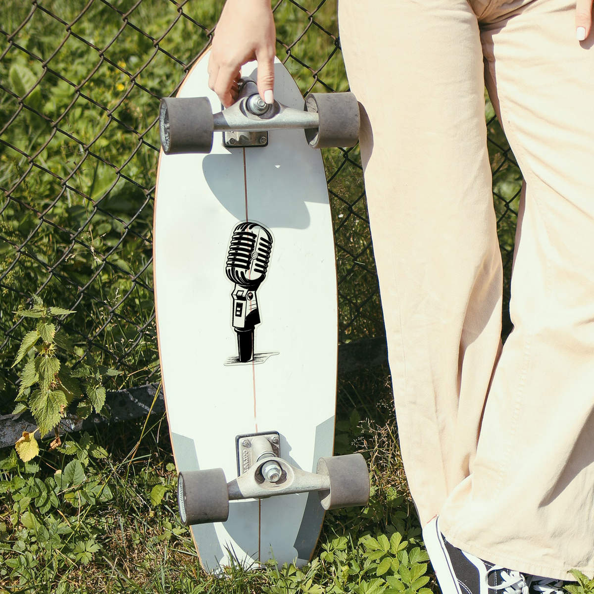 'microphone' Clear Premium Vinyl Decal Stickers – Waterproof, Durable & Easy to Apply - For Car Bumpers, Windows, Bins & More - Large (210mm) (DC00120450)