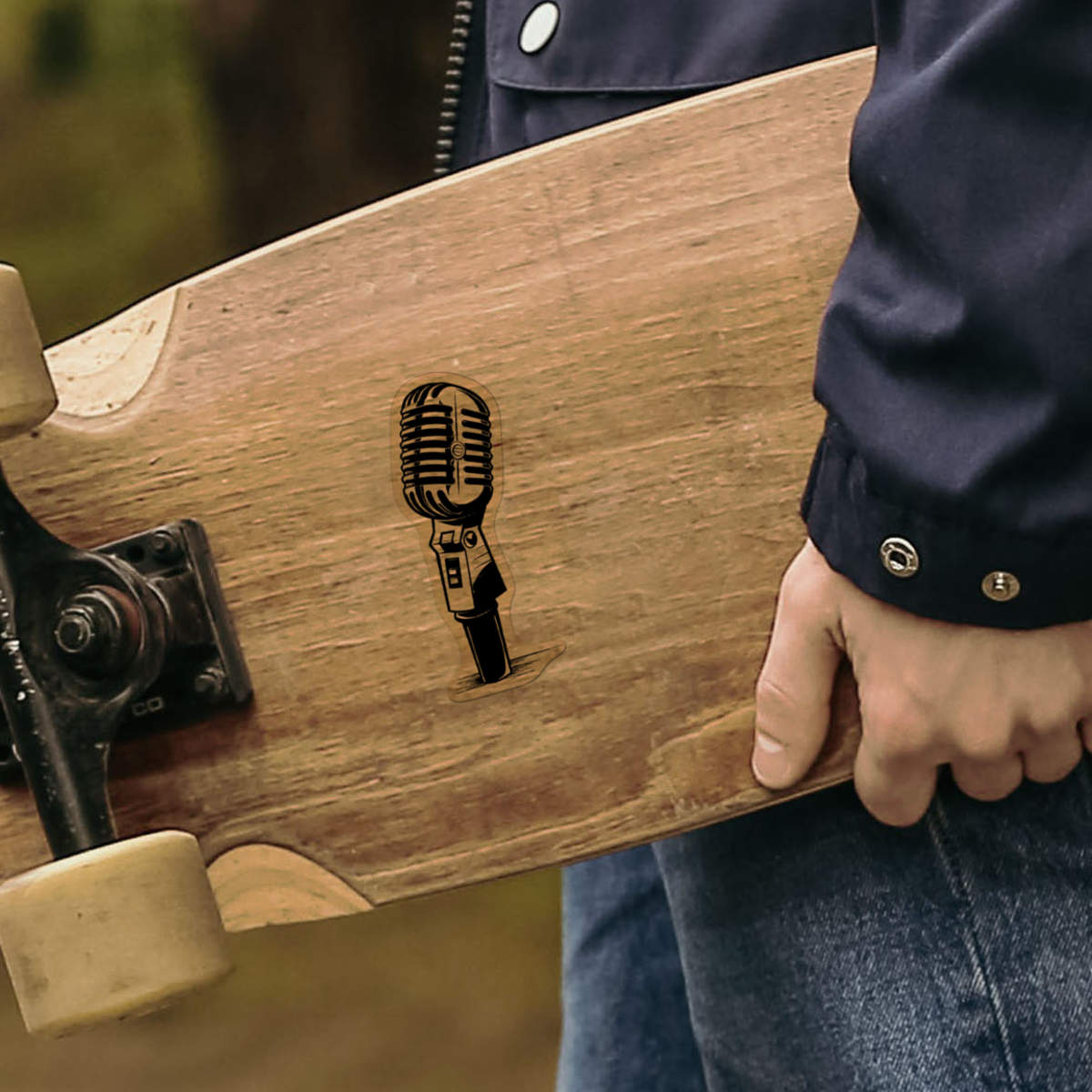 'microphone' Clear Premium Vinyl Decal Stickers – Waterproof, Durable & Easy to Apply - For Car Bumpers, Windows, Bins & More - Medium (100mm) (DC00120449)