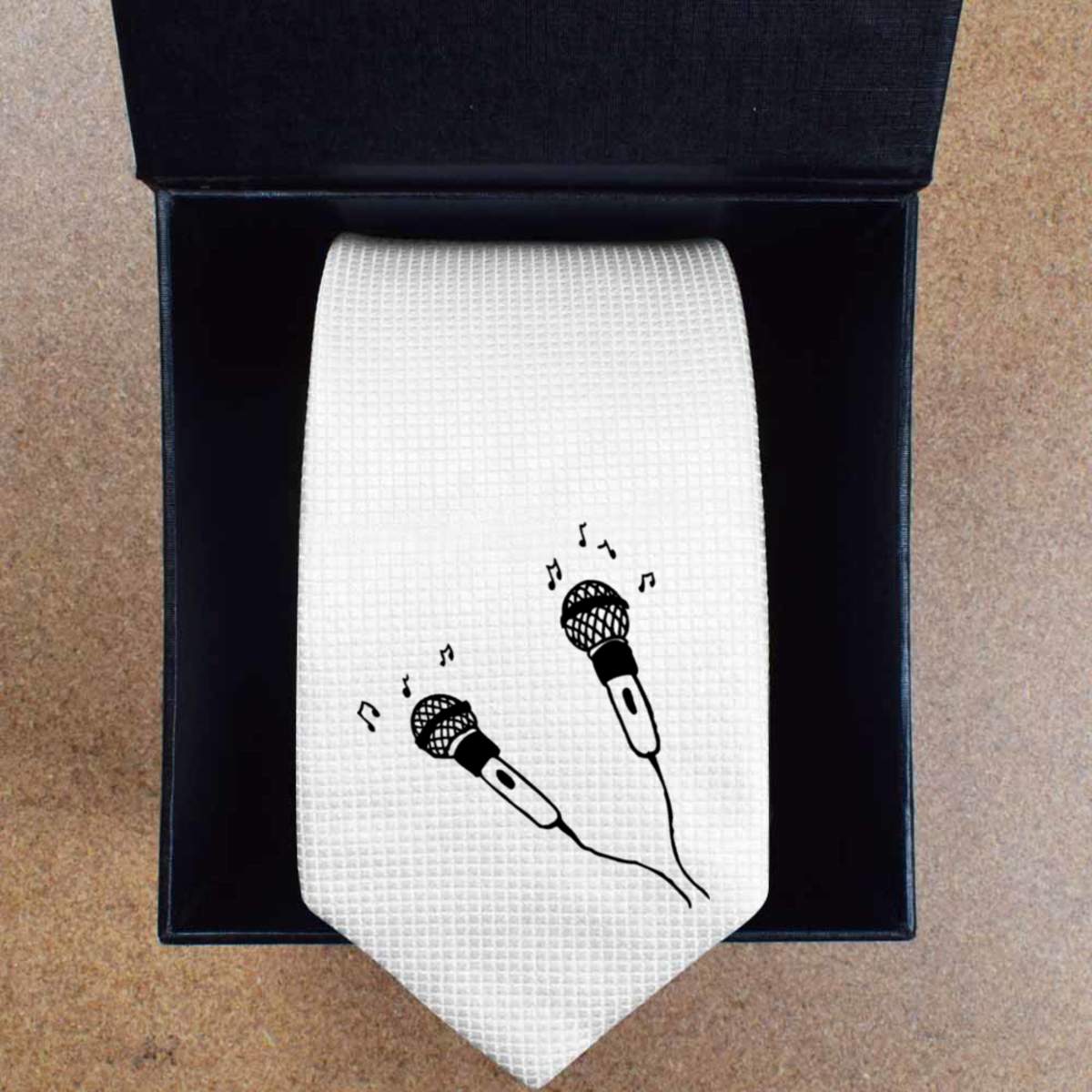 'Microphones' White Tie / Necktie with Gift Box (AT00001241)