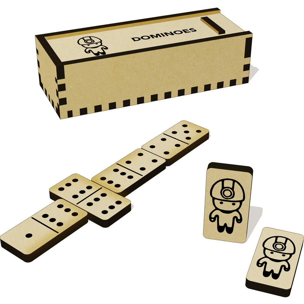 A full set of 28 MDF dominoes + an additional 6 blanks, complete with a slide top box to store them in.