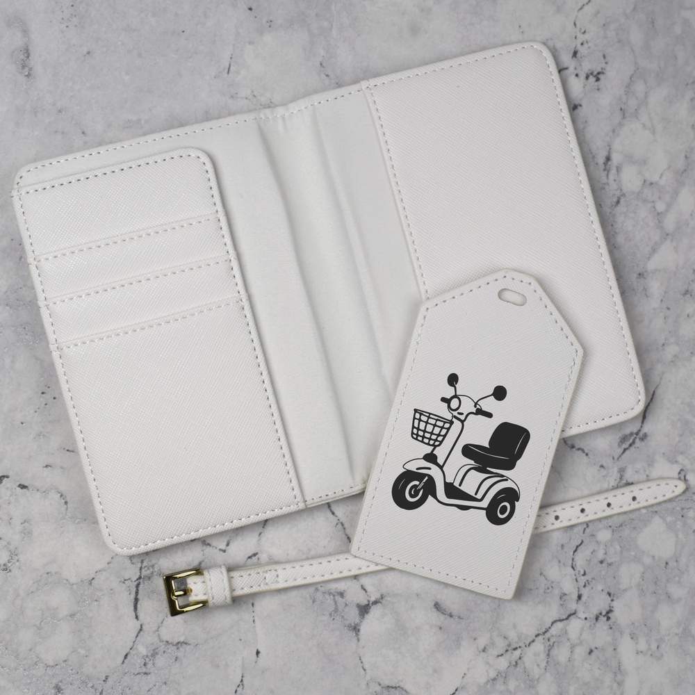A luxury travel set for holiday makers and jet setters! This premium duo consists of a passport cover and matching luggage tag; both made from white, leather-look PU and printed with a unique design.