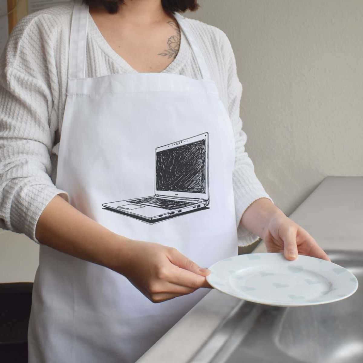 'Modern Laptop Computer' Unisex Cooking Apron (AP00066386)