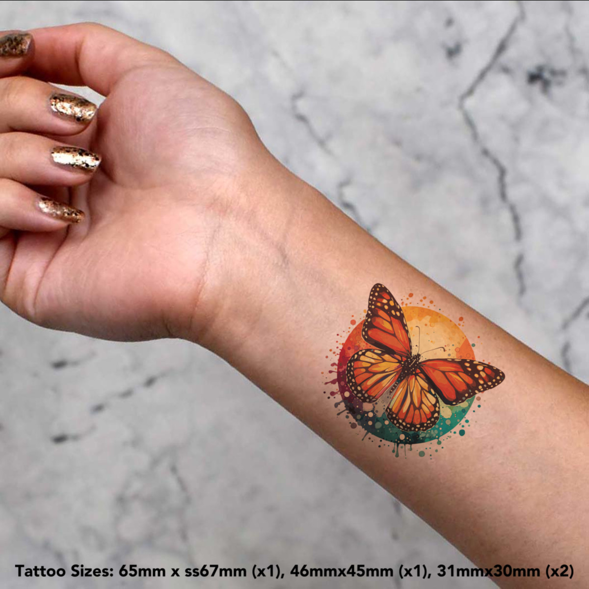 'Monarch Butterfly' Temporary Tattoos - Water Resistant, Skin-Safe, Non-Toxic Transfers (TO047492)