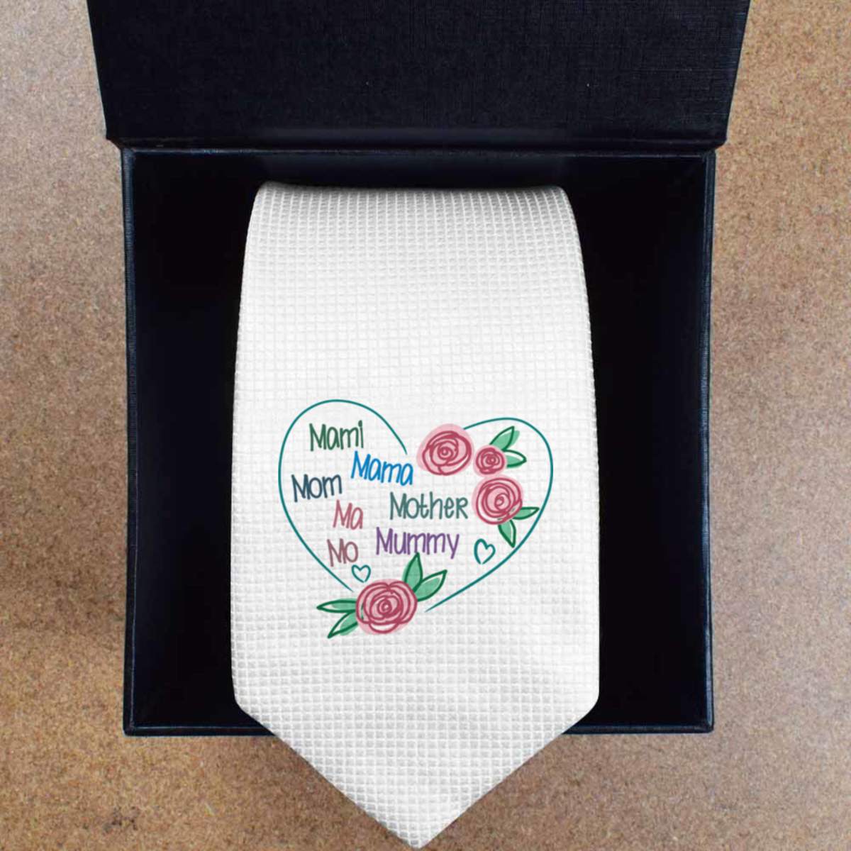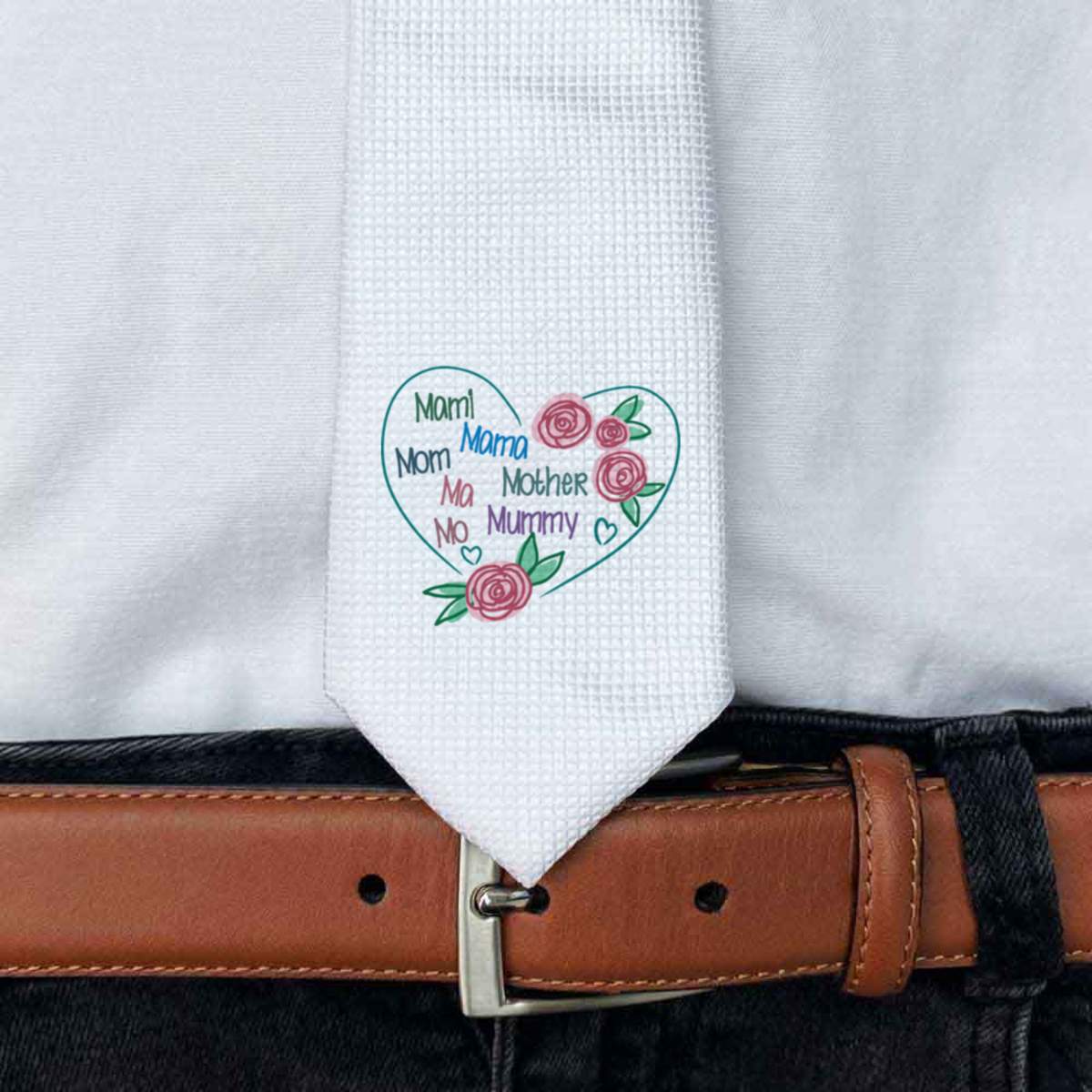 This stylish slim white tie is guaranteed to add class to any outfit. Printed on the front with a design from one of our talented designers, these ties are perfect for formal events, special occasions or making a statement at the office.