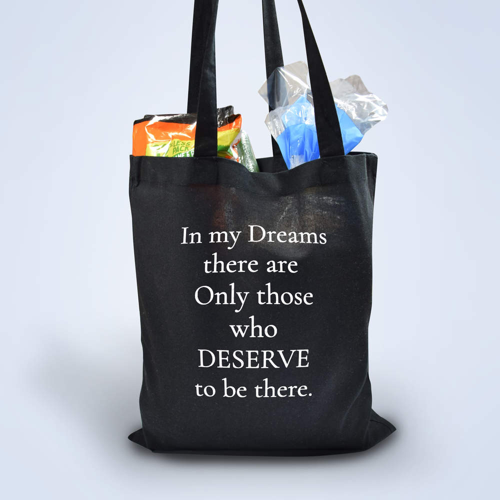 'Motivational Text' Classic Black Tote Shopper Bag (ZB00023497)
