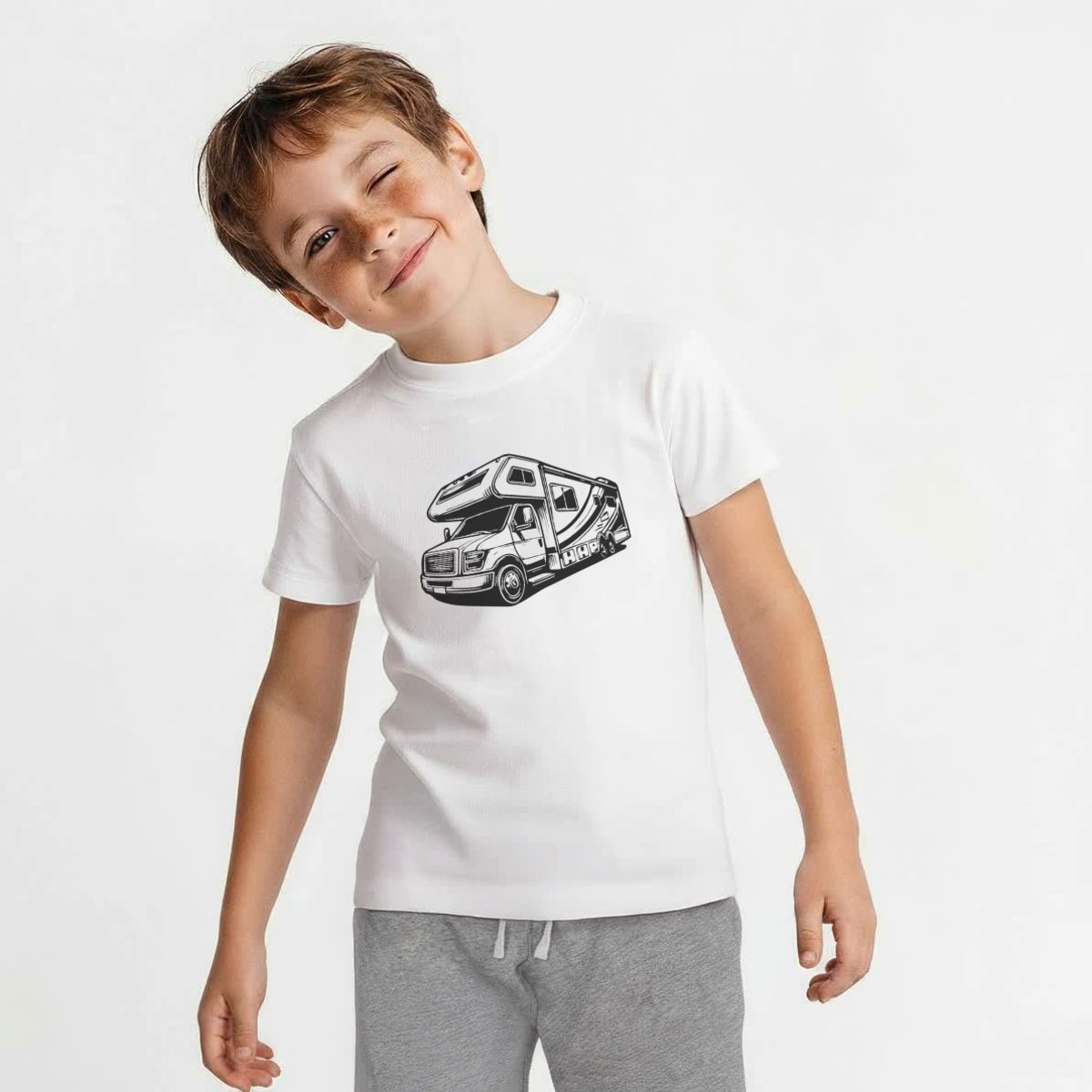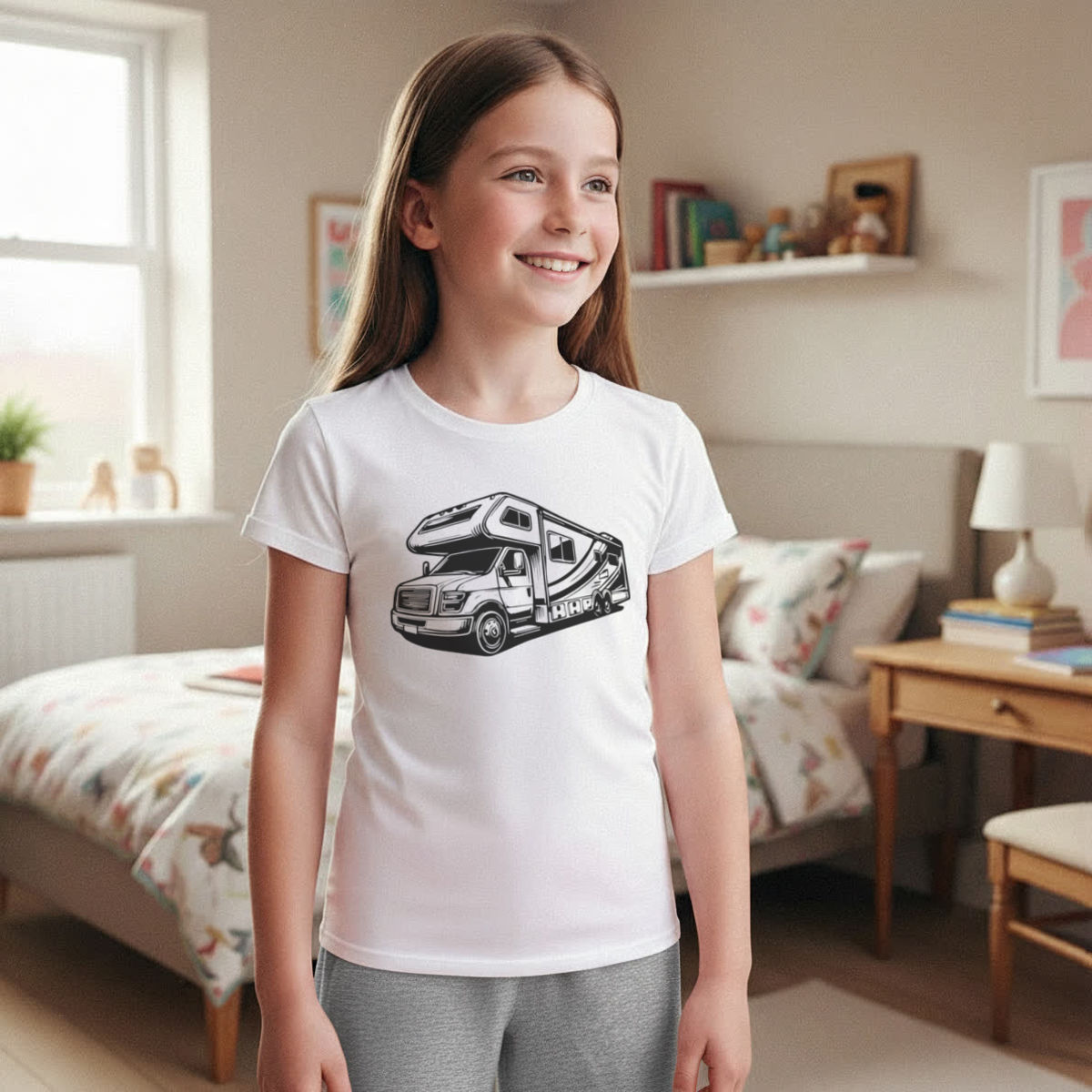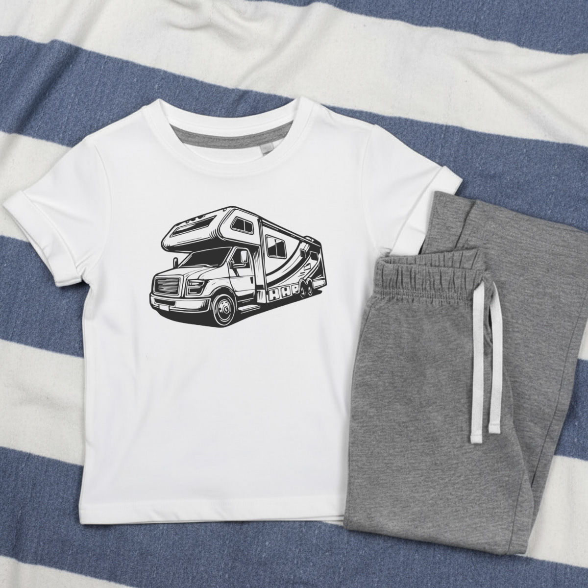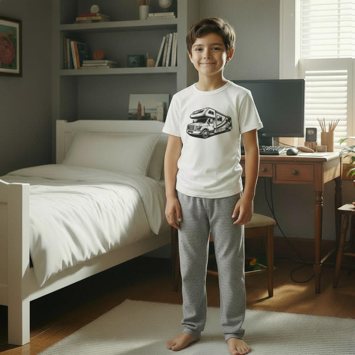 'Motor Home' Kids Cotton Pyjama Set – Comfortable Children's Nightwear, Sleepwear and Loungewear - Unisex for Boys and Girls - Grey, 9-10 Years (KP00153956)