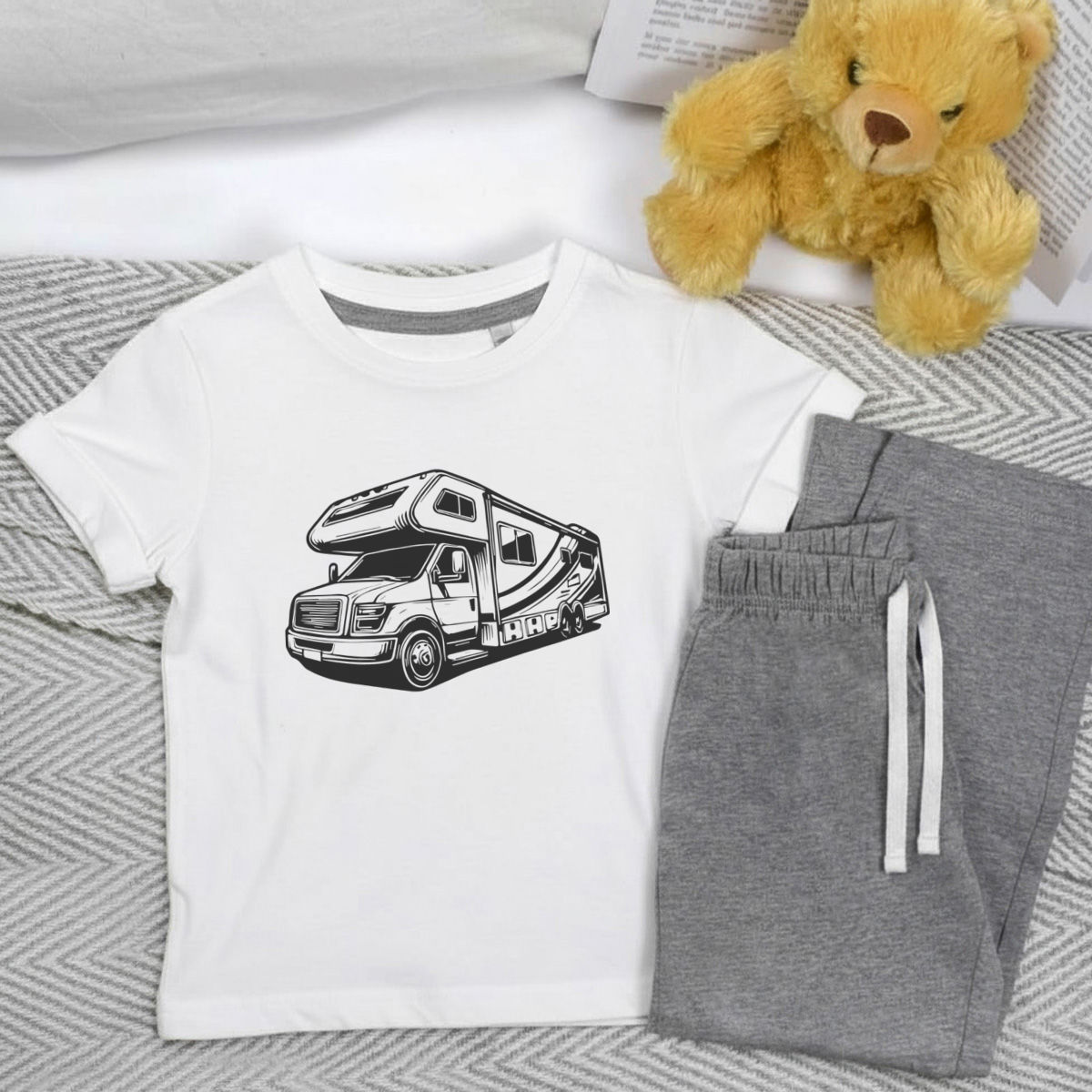 'Motor Home' Kids Cotton Pyjama Set – Comfortable Children's Nightwear, Sleepwear and Loungewear - Unisex for Boys and Girls – Grey (KP047687)