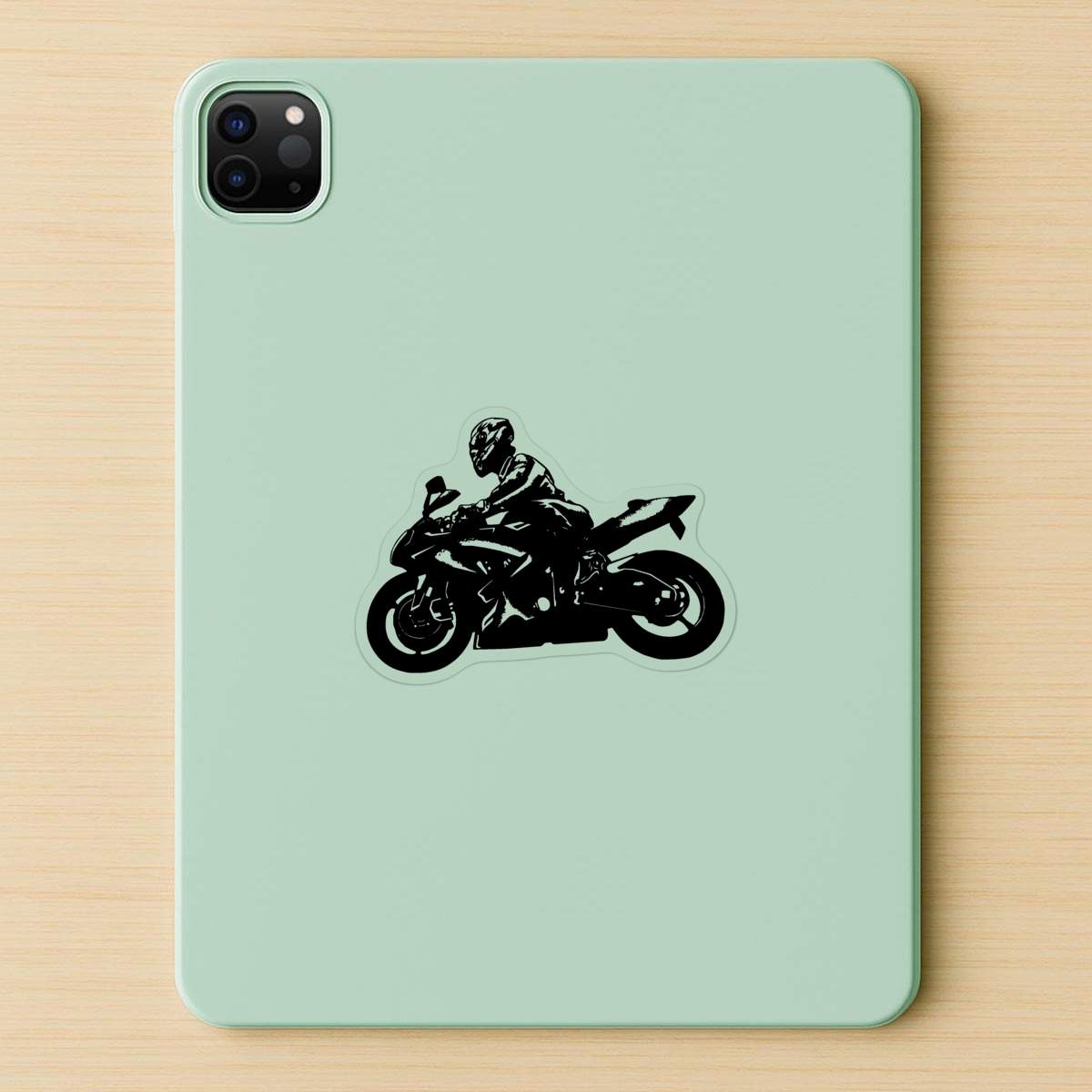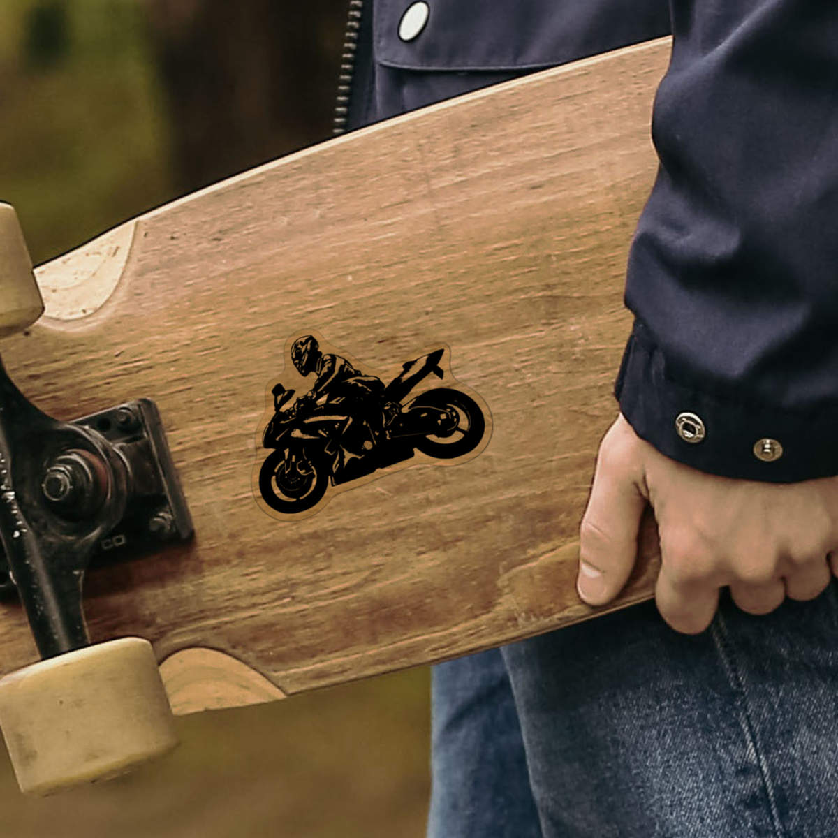 'Motorcyclist' Clear Premium Vinyl Decal Stickers – Waterproof, Durable & Easy to Apply - For Car Bumpers, Windows, Bins & More - Medium (100mm) (DC00091098)
