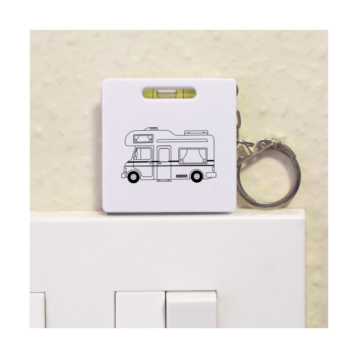 This multifunctional tool offers both a tape measure and spirit level in one handy little accessory. The retractable, 1 metre tape measure has both imperial and metric units, while the flat edges around its plastic casing provide the ability to check both vertical and horizontal surfaces with a mini spirit level. The compact and lightweight design makes it easy to carry around; simply attach with the keychain provided and whip it out when needed. Each keyring tape measure tool is printed on one side with a unique design.