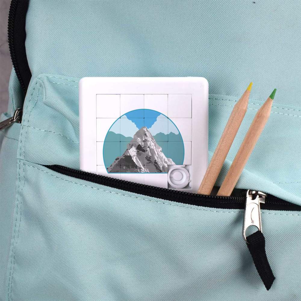- Pocket sized puzzle with sliding square pieces