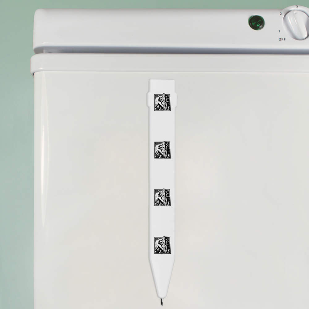 - A flat ballpoint pen with magnetic strip on the back