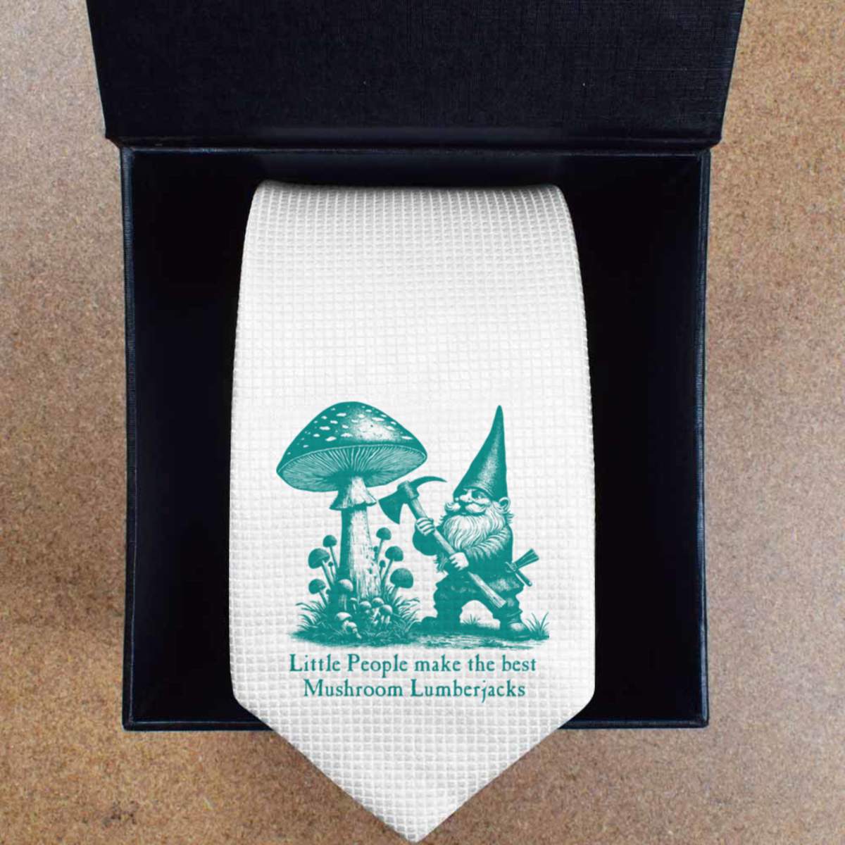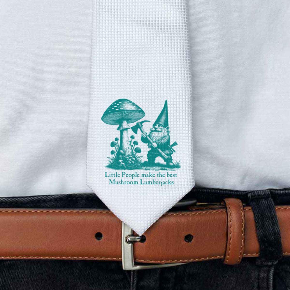 This stylish slim white tie is guaranteed to add class to any outfit. Printed on the front with a design from one of our talented designers, these ties are perfect for formal events, special occasions or making a statement at the office.