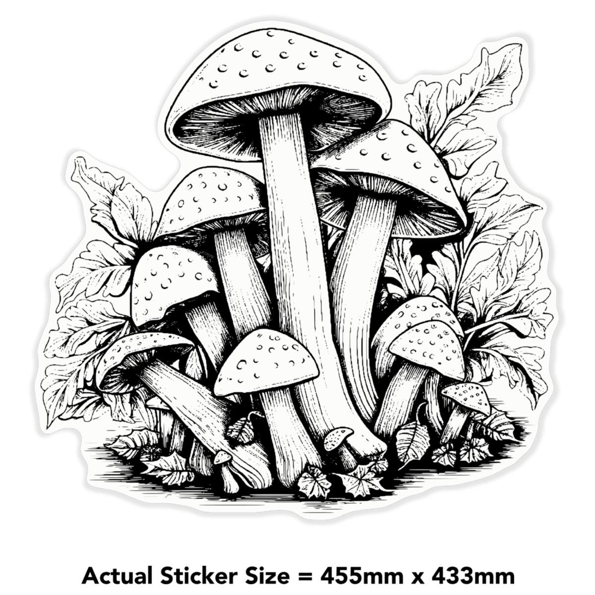 'mushrooms' Clear Premium Vinyl Decal Stickers – Waterproof, Durable & Easy to Apply - For Car Bumpers, Windows, Bins & More - XL (460mm) (DC00119275)