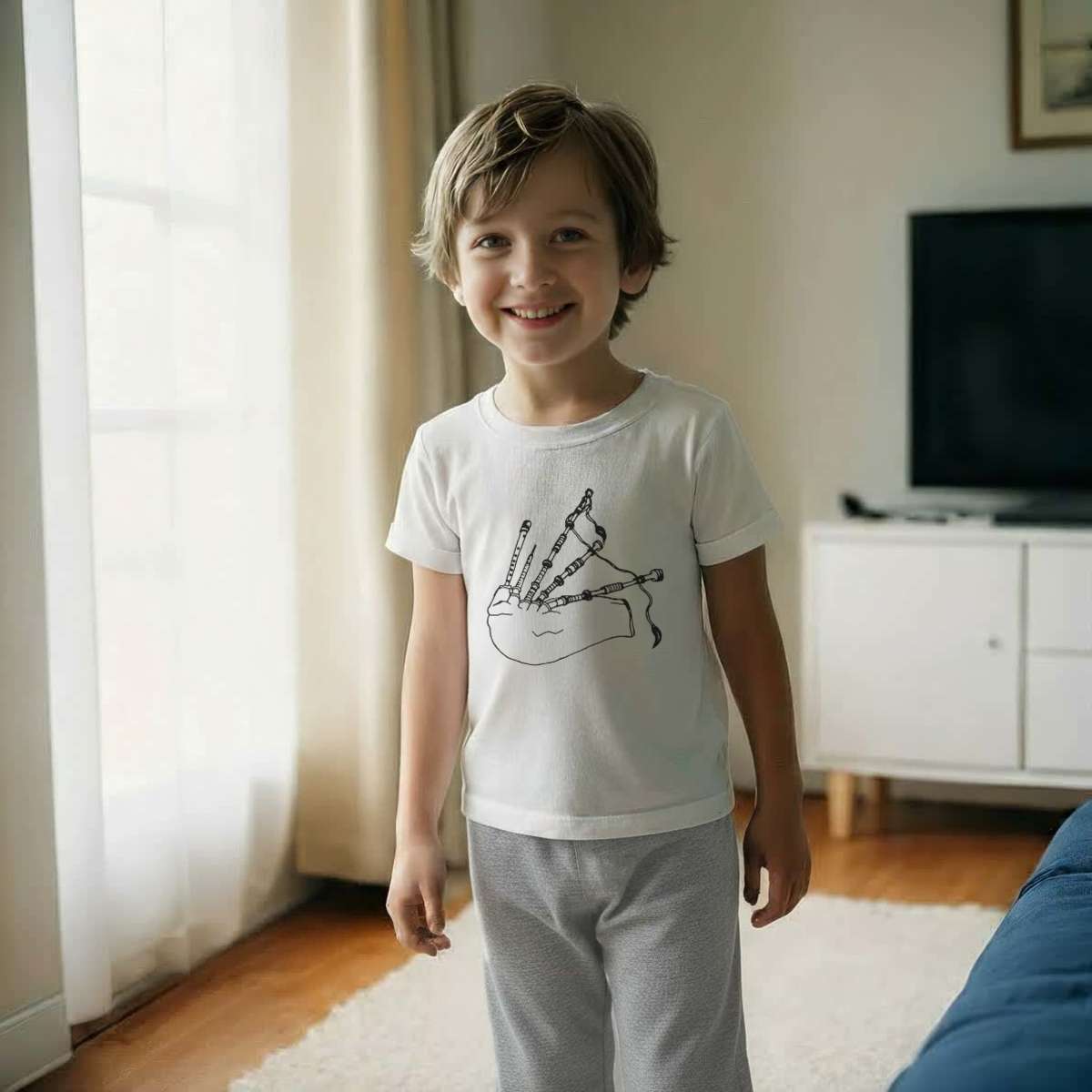 'Musical Bagpipes' Kids Cotton Pyjama Set – Comfortable Children's Nightwear, Sleepwear and Loungewear - Unisex for Boys and Girls – Grey (KP015526)
