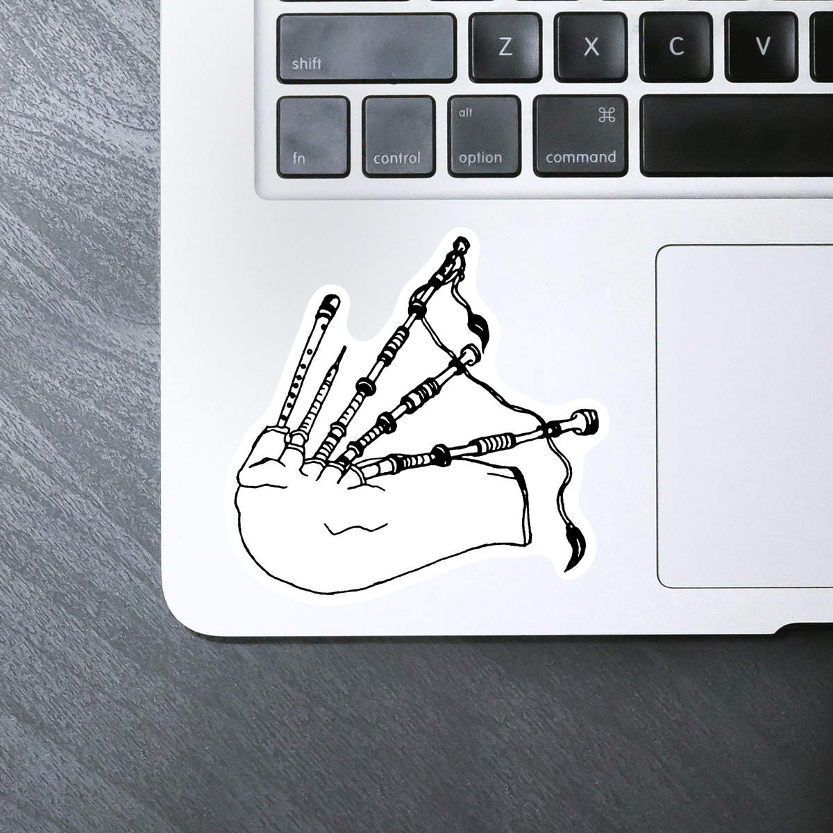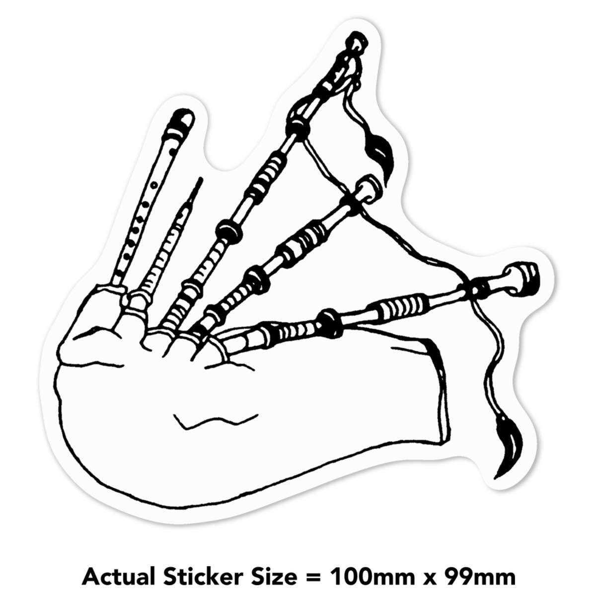 'Musical Bagpipes' White Premium Vinyl Decal Sticker – Waterproof, Durable & Easy to Apply - For Car Bumpers, Windows, Bins & More - Medium (100mm) (DW00017986)