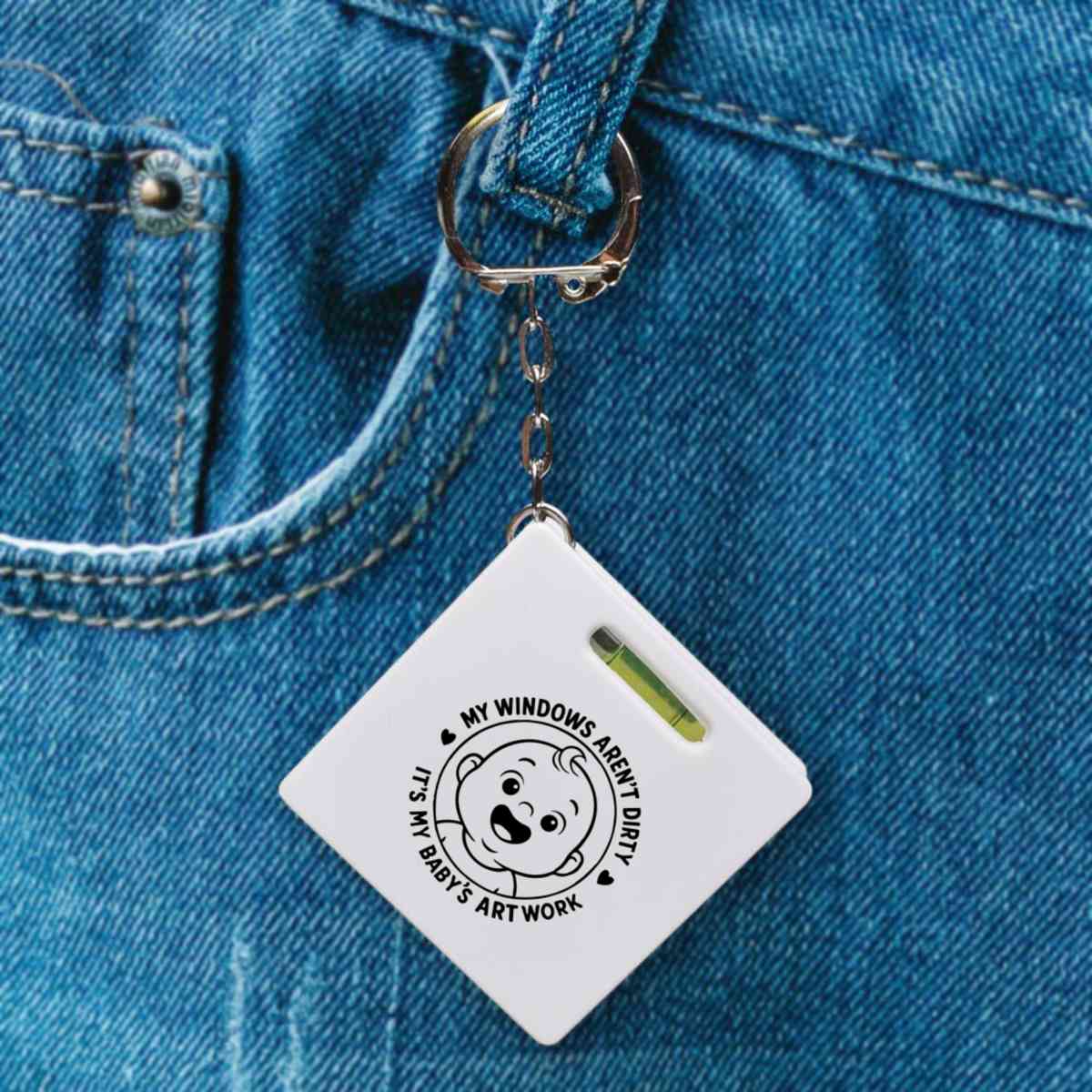 This multifunctional tool offers both a tape measure and spirit level in one handy little accessory. The retractable, 1 metre tape measure has both imperial and metric units, while the flat edges around its plastic casing provide the ability to check both vertical and horizontal surfaces with a mini spirit level. The compact and lightweight design makes it easy to carry around; simply attach with the keychain provided and whip it out when needed. Each keyring tape measure tool is printed on one side with a unique design.