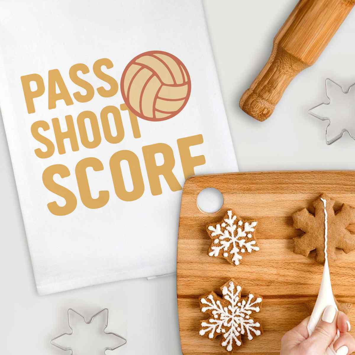 'A vibrant netball design, highlighting the key actions of passing, shooting, and scoring in the exciting sport.'