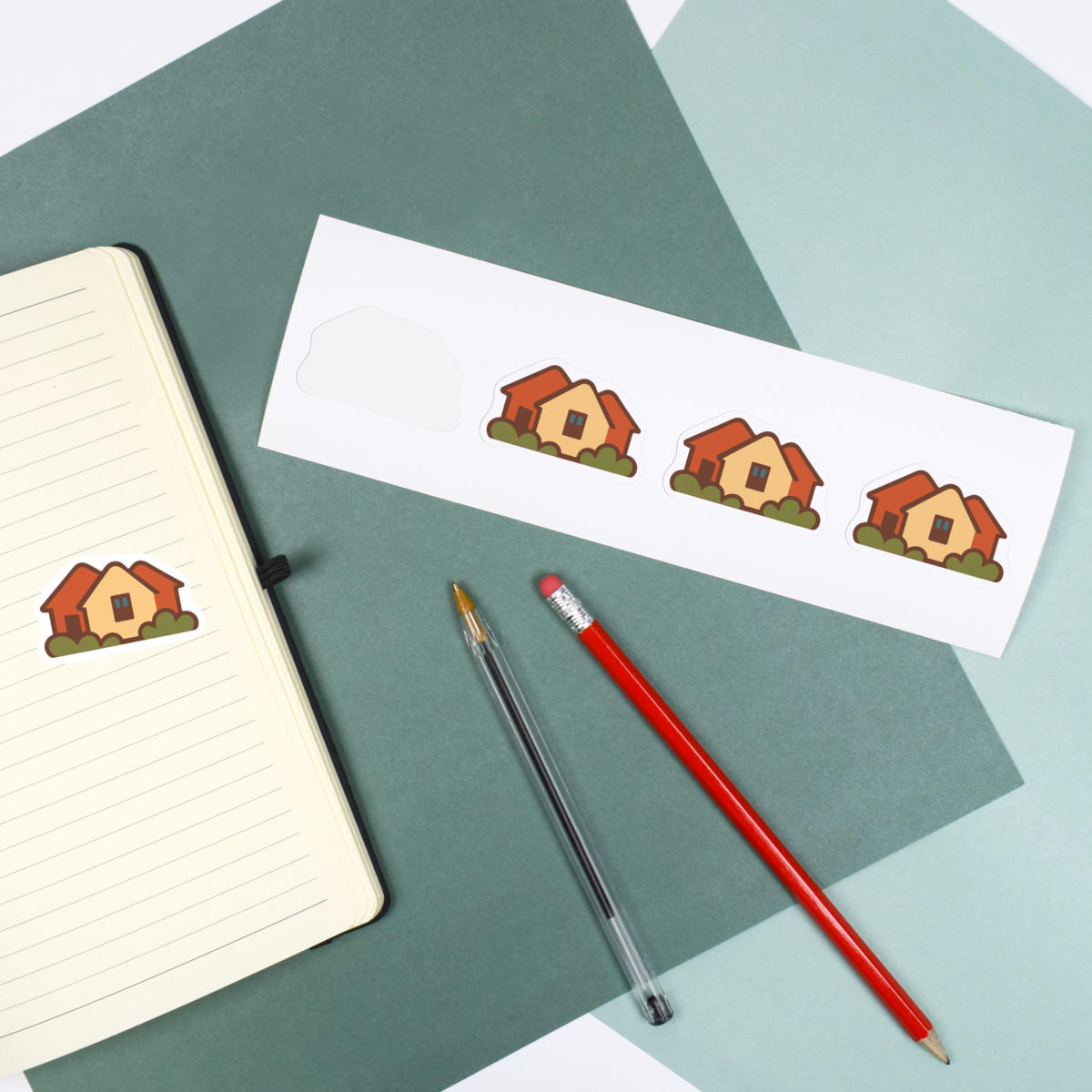 'A simple yet effective design showing a row of homes, symbolizing community, neighbourhood, and suburban life.'