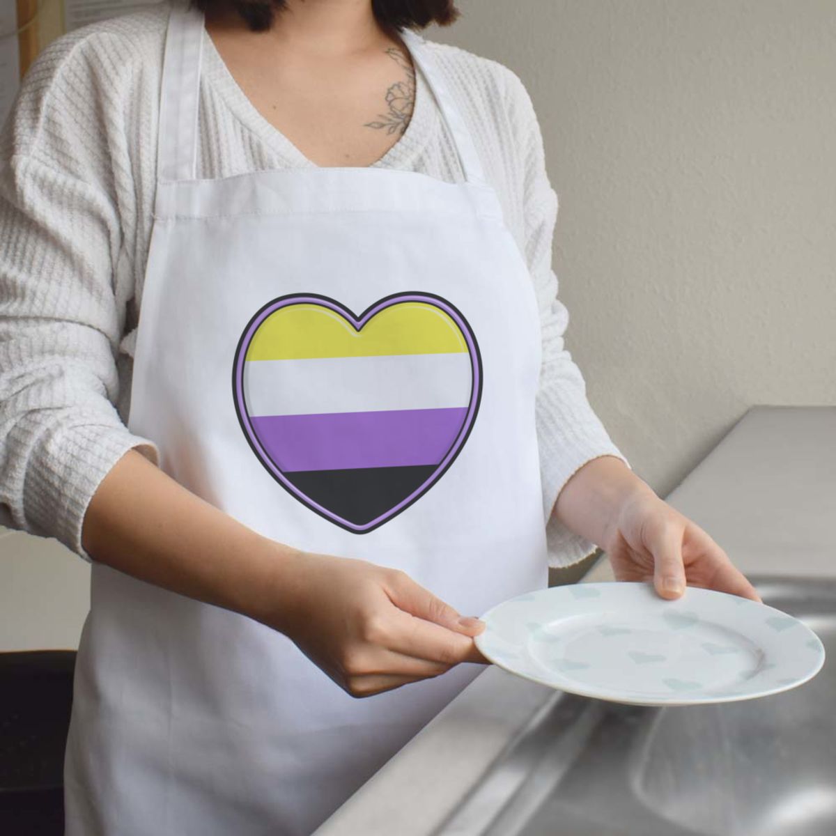 'Nonbinary Pride Heart' Unisex Cooking Apron (AP00038060)