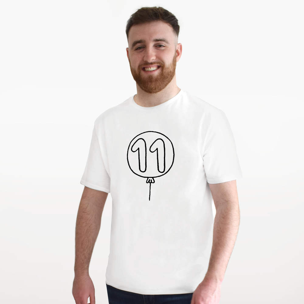 'Number 11 Balloon' Unisex T-Shirt - 100 % Cotton, White, XL (TA00020140)