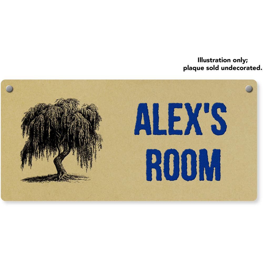 The plaques are made from a slim 3mm MDF - making them durable, but also very light. They have two holes, one in each of the top corners, and can either be screwed in place or have rope threaded through them to hang them. Neither screws nor rope are included with the plaque.