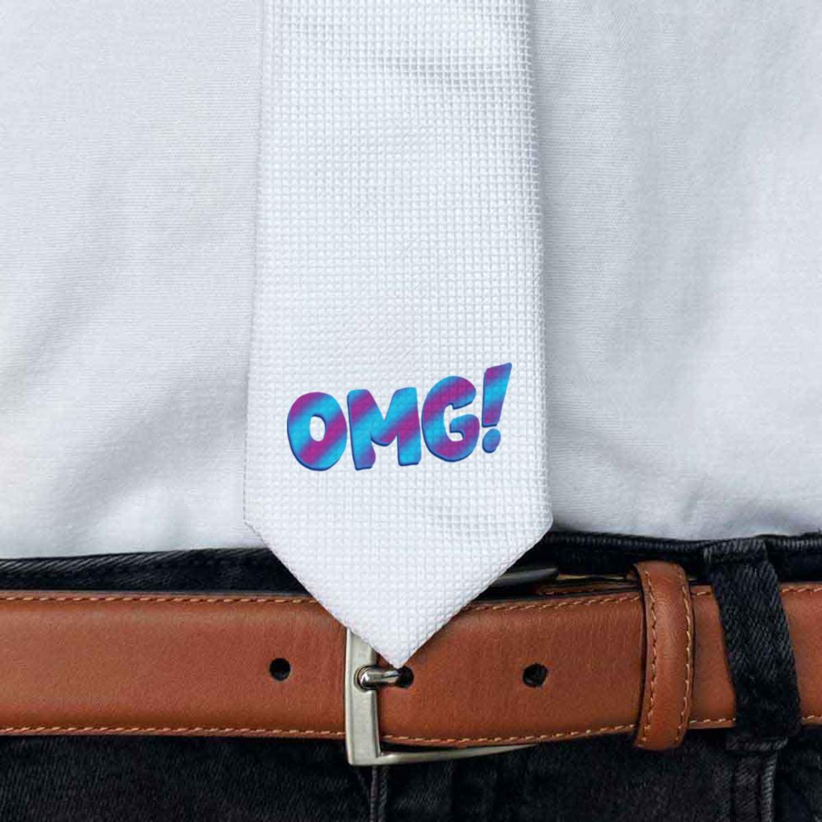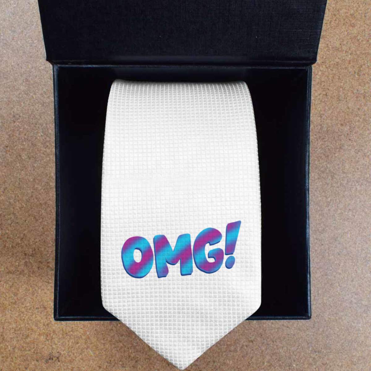 This stylish slim white tie is guaranteed to add class to any outfit. Printed on the front with a design from one of our talented designers, these ties are perfect for formal events, special occasions or making a statement at the office.