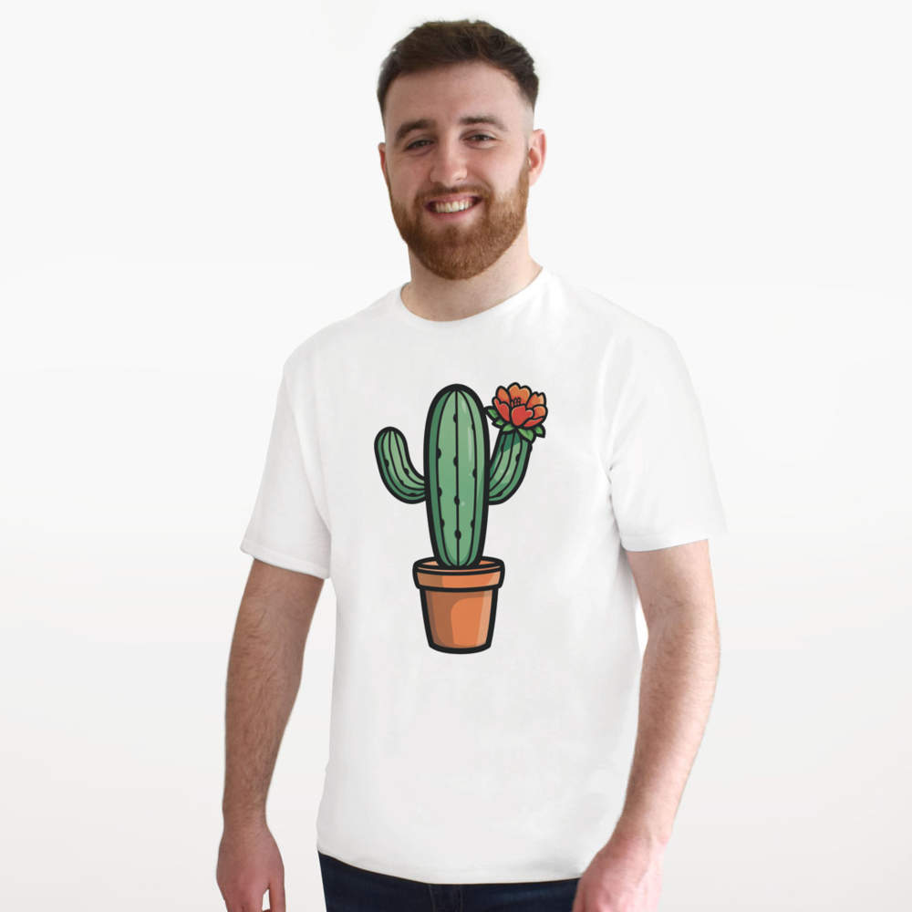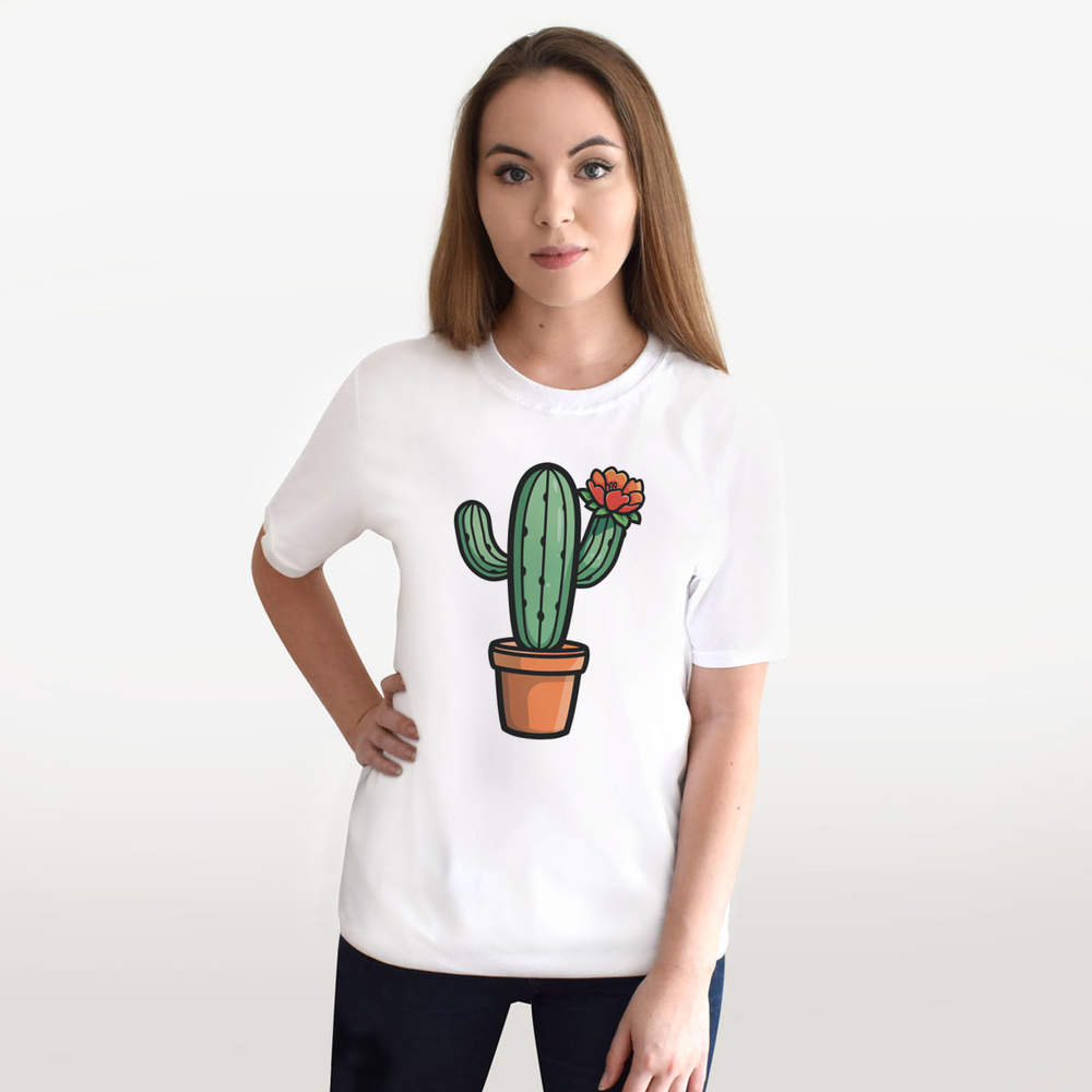 'One Flower Cactus' Unisex T-Shirt - 100 % Cotton, White, XL (TA00303401)