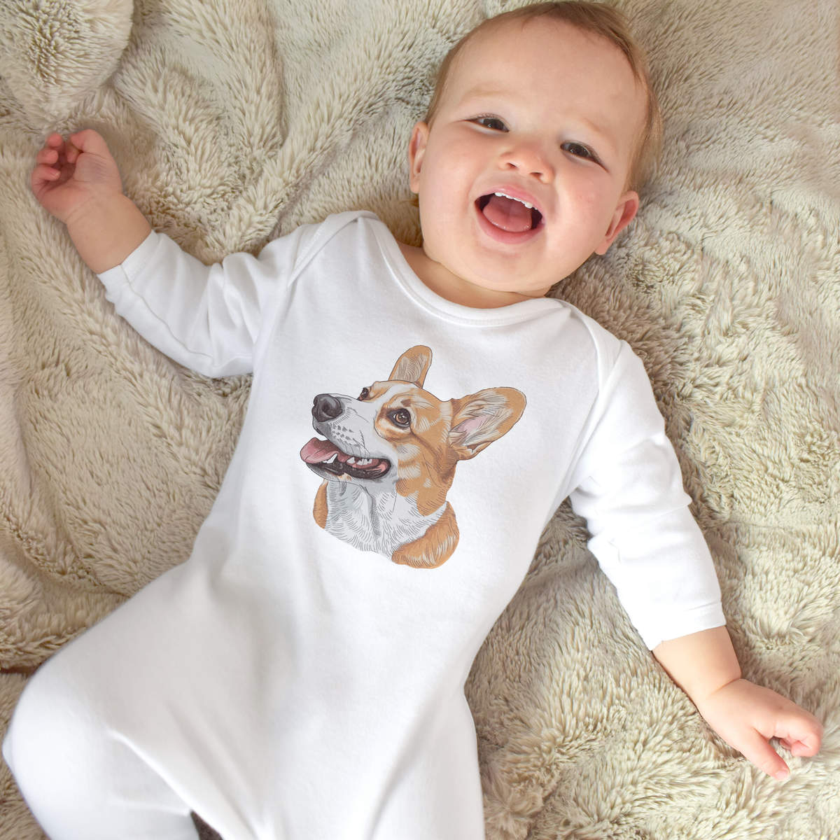 Little ones can sleep peacefully in this super soft romper sleepsuit. Our unisex jumpsuits are made from 100% cotton and are printed on the front with a unique design. Practical functions include popper fastenings for ease of changing and built-in feet.