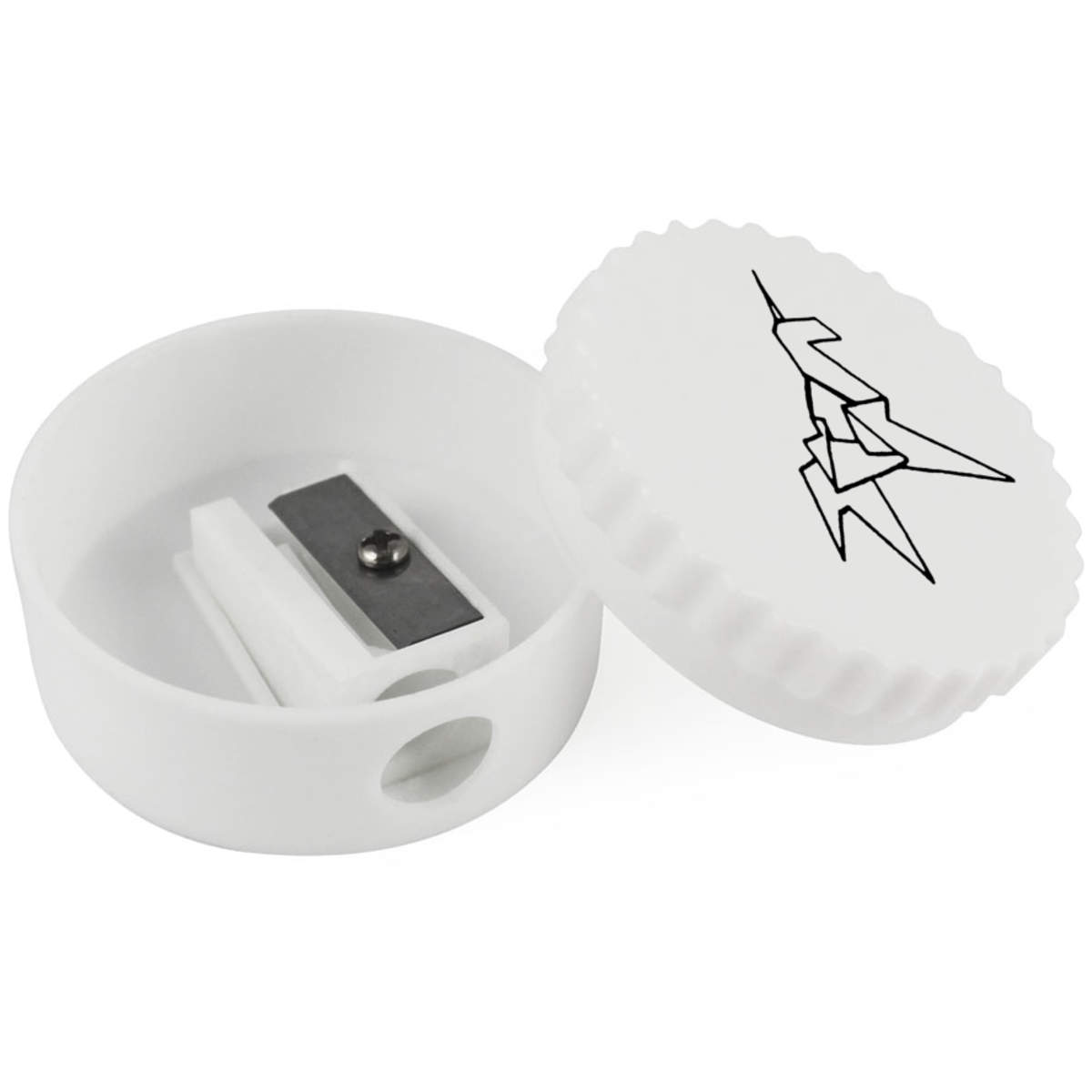 Keep your pencils sharp and ready to use with this sturdy, single hole sharpener featuring one of our awesome designs. The twisting lid conceals the hole to the blade and removes completely to allow shavings to be discarded.