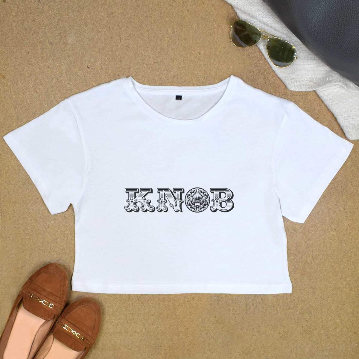 'Women's, Crop Top, White, Crew neck, Cropped'