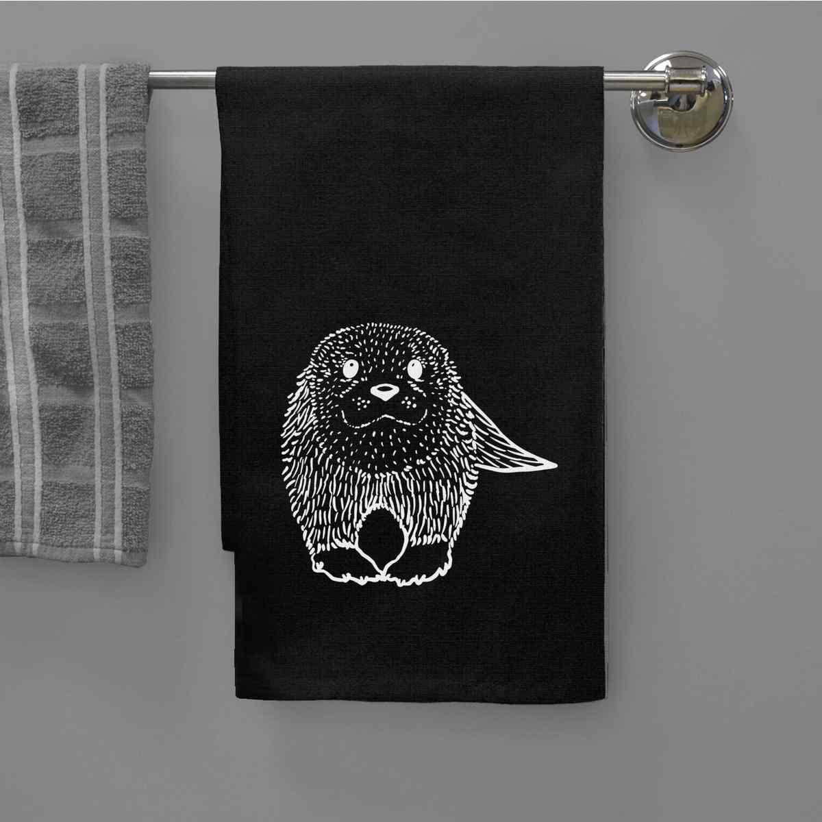 'Otter' Black Cotton Tea Towel / Dish Cloth (TW00044412)