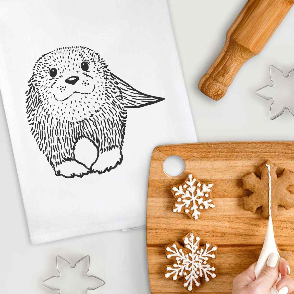 - White cotton tea towel with hanging loop